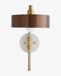 Clean and contemporary, the Aaron Sconce lends a dimensional presence to your walls with its varied materials. Its brass steel frame is wrapped in one of two colorways, bookended by a marble base and bronze iron drum. The marbling on each piece will vary, giving the Aaron Sconce a unique design that is sensible while blending industrial modernism with natural materials for a versatile style.