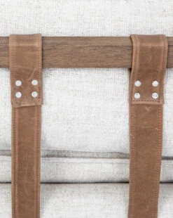 A carefully curated mix of materials creates the streamlined silhouette of the Aberdeen Day Bed. From the natural parawood frame, to the modern details of the taupe leather buckles, this chaise provides the perfect amount of comfort for reading or napping with its cream-colored pillow top cushions.