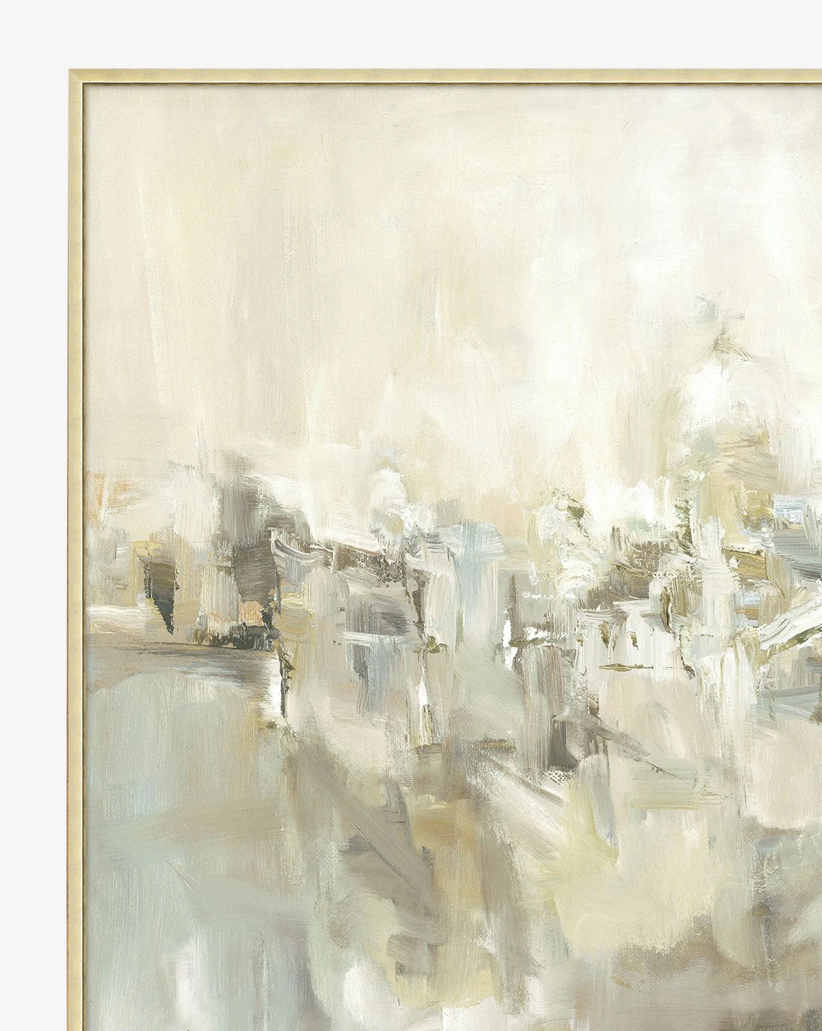 In an emotive composition, Abstract Village is presented on gallery-wrapped canvas within a silver wood frame. Exploring color and texture, the piece by James Pratt brings beauty and intrigue wherever it is styled.