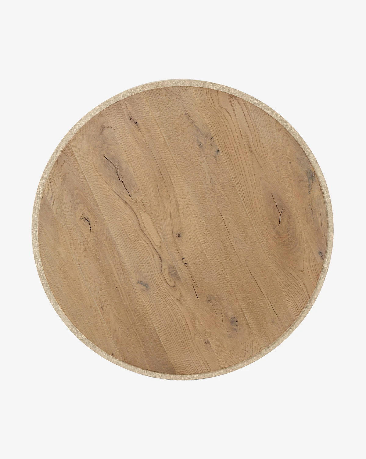 A beautiful oak tabletop with natural detail makes the Adderley Coffee Table stand out. With a round form covered in light cream shagreen, the coffee table makes a unique base for decor and entertaining.