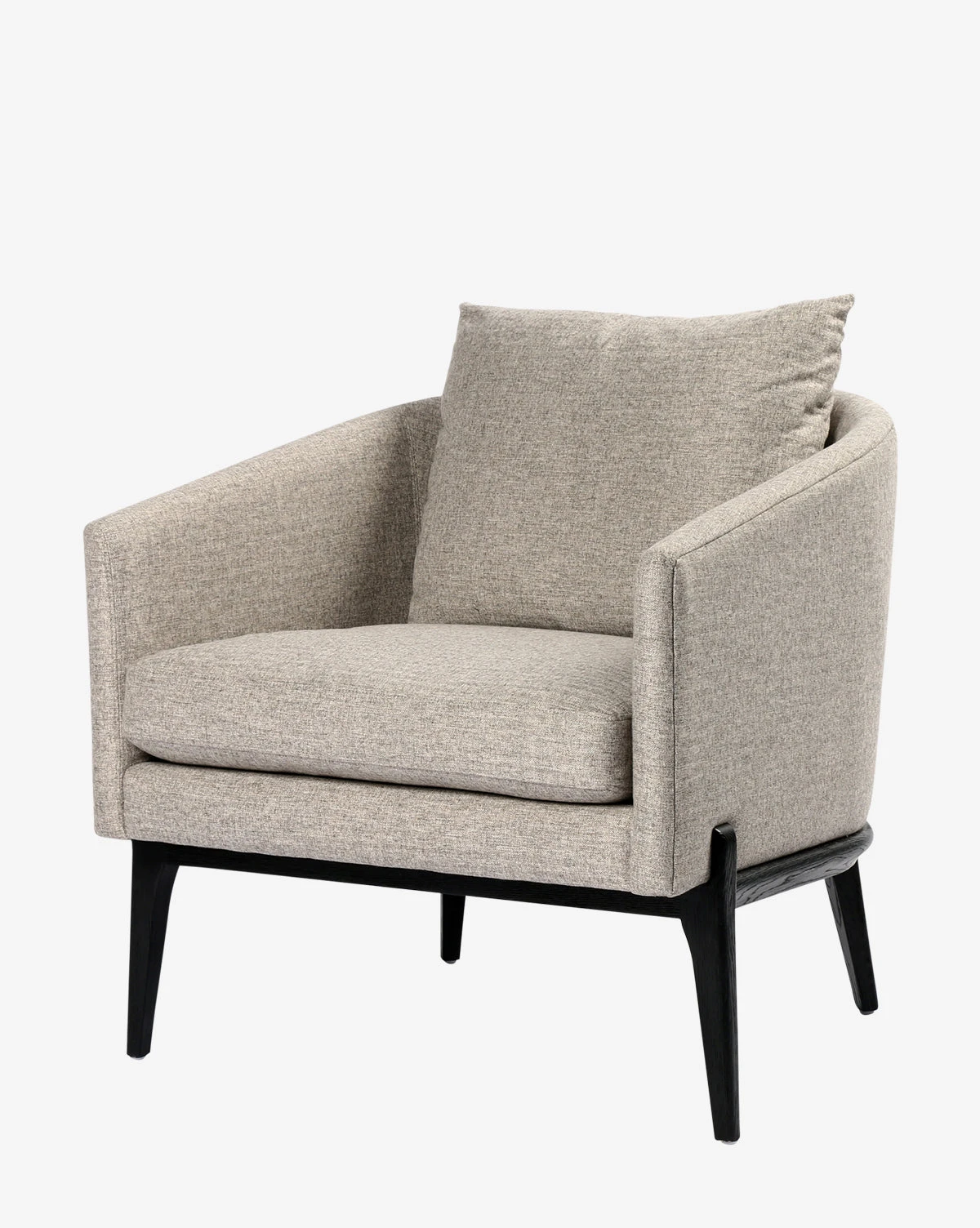A refreshed take on a classic lounge chair, the Adina Chair features a slim, cradled framing made from oak. The upholstered chair is round yet streamlined, with a single pillow for added comfort. In either a simple cream performance fabric or a neutral herringbone fabric, the chair subtly elevates your decor.