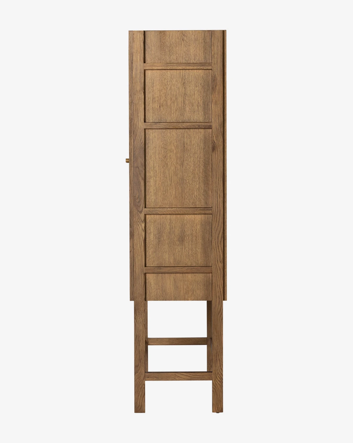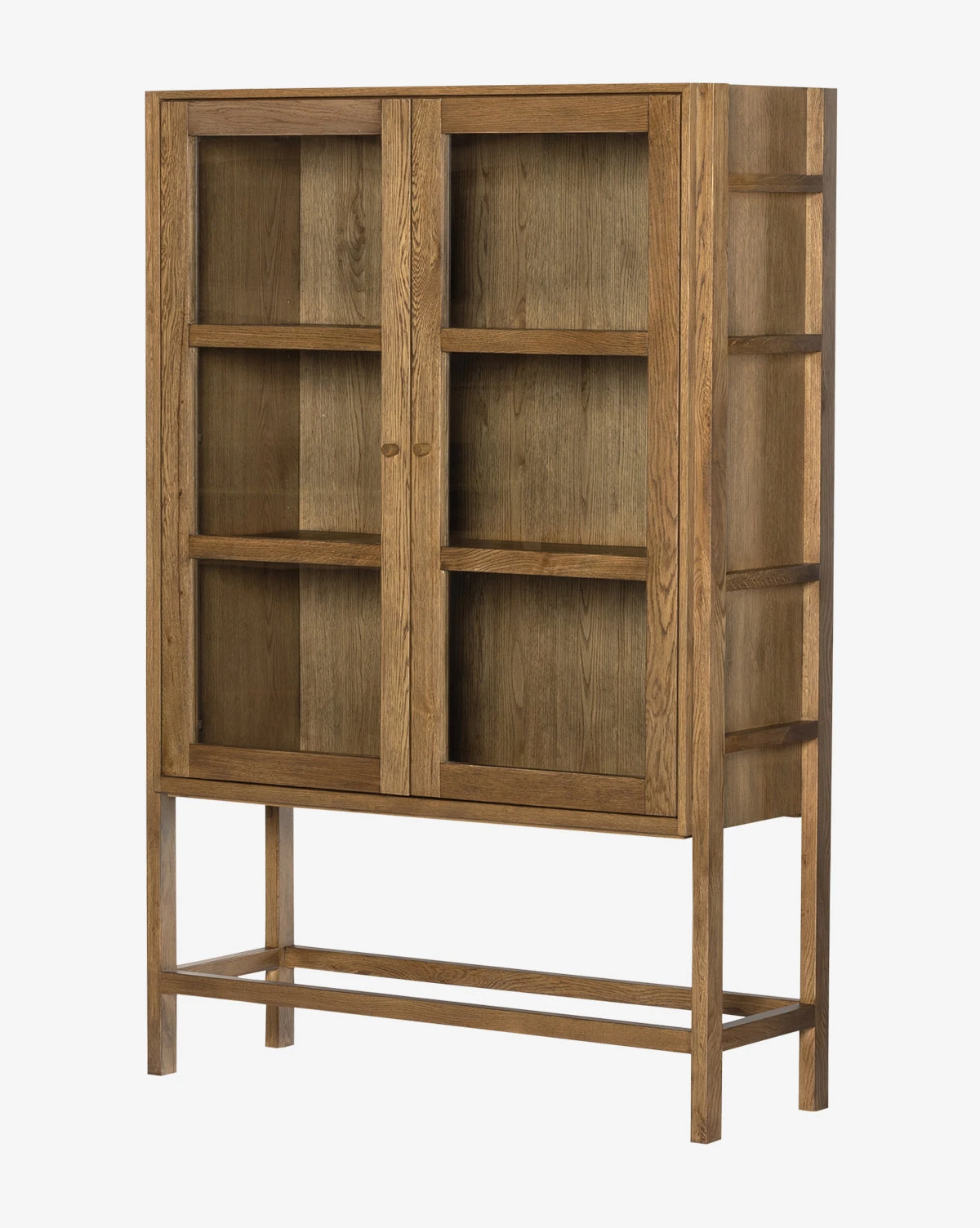 Elevate your home design with the sleek form of the Allaston Cabinet. Crafted from oak, this cabinet features exposed framework and three spacious enclosed shelves. Glass doors and a warm finish create the perfect space for your treasured pieces.