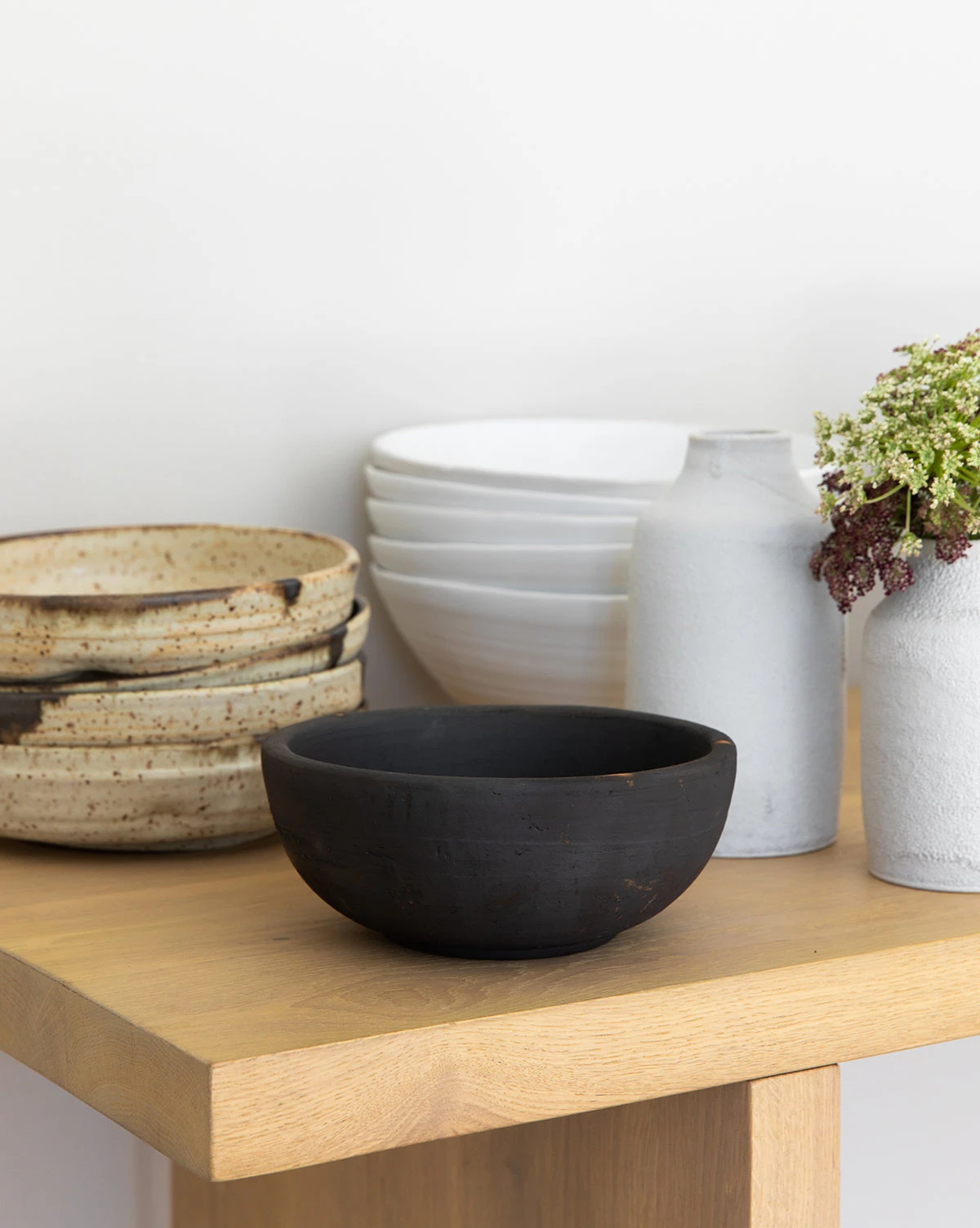 Steeped in timeworn tradition, the Ambrie Terracotta Bowl is handmade and burned over an open fire creating its unique hue and one-of-a-kind look. Styled in your kitchen and filled with produce, or perfectly placed in your built-ins, this bowl is as versatile as it is beautiful.