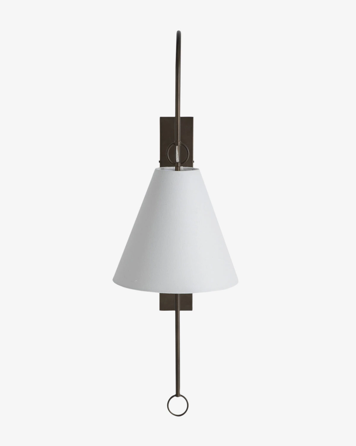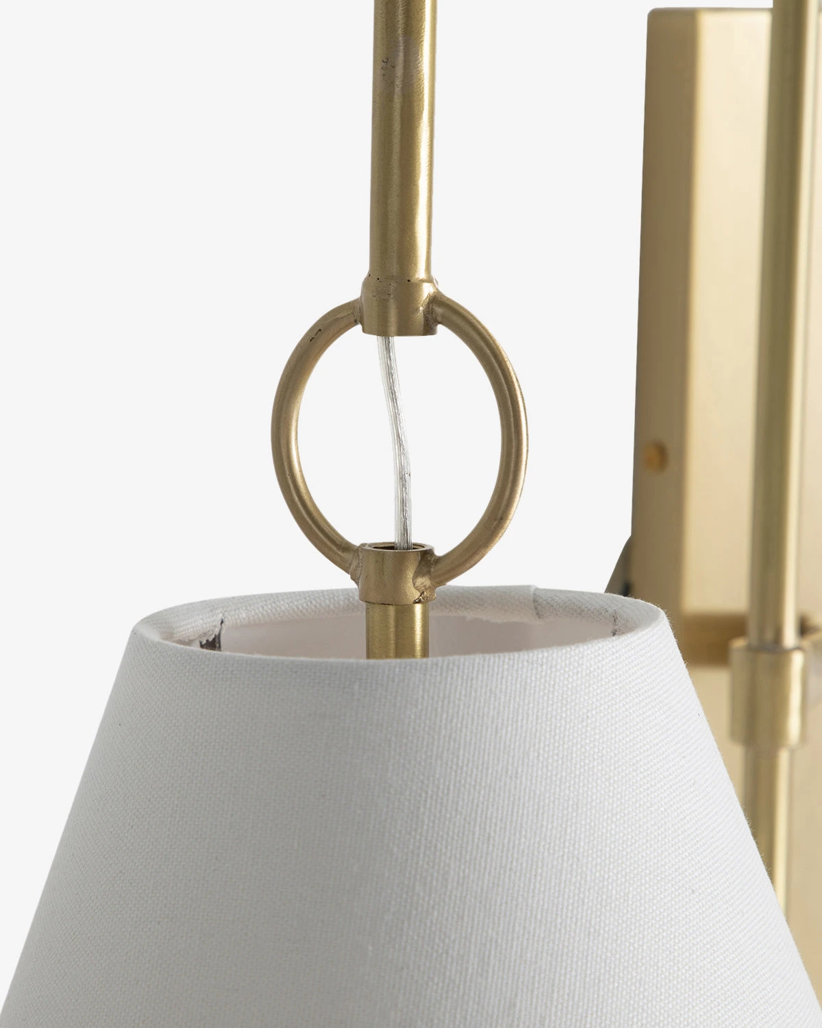 In a minimalist design with unpretentious ring details, the Anniston Sconce is a stunning, crisp addition to wall lighting design. Its arm and backplate are available in two finishes, with a curvilinear arm that pivots as needed to direct the light where you need it. Its feather white linen shade is a classic shape, grounding the sconce with a traditional feel. Whether used solo or in pairs, this sconce creates elegant vignettes wherever used.