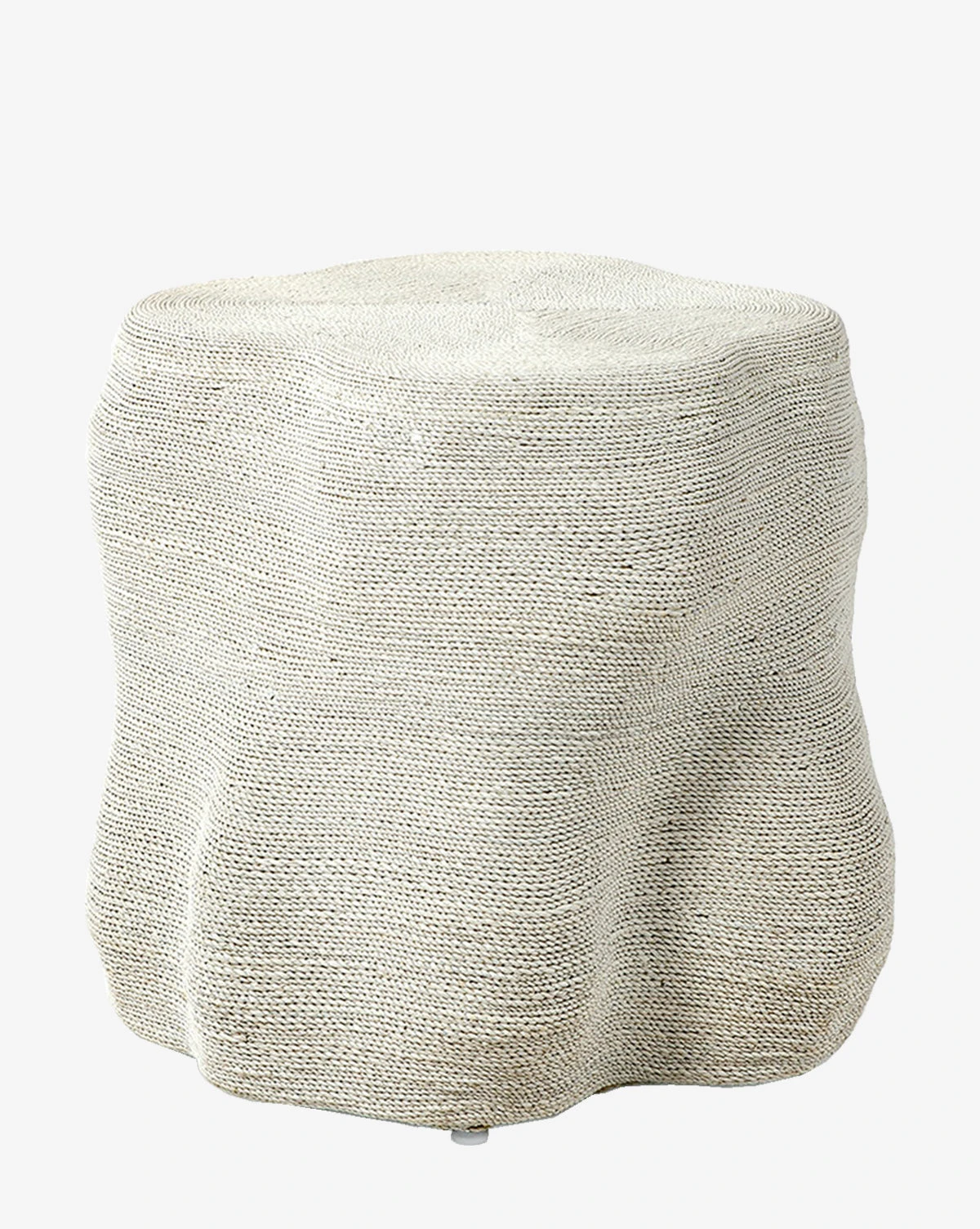 In a nature-inspired form, the Aphra Side Table is contemporary and subtly textural. Handwoven Lampakanay rope in a whitewash wraps around the side table, bringing unique detail to your living room styling.