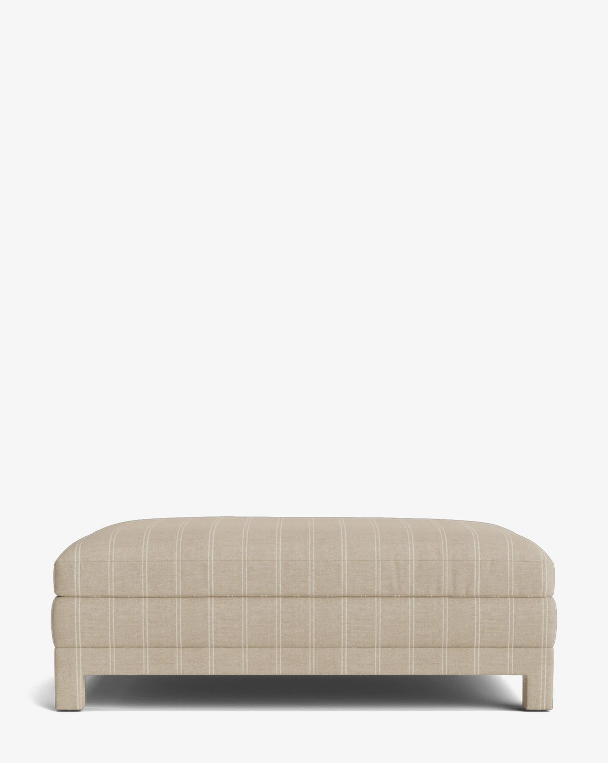Made to order with a timeless silhouette and upholstered legs, the modern frame of the Appoline Ottoman holds a wide cushion that is firm, yet comfortable. As part of the made to order Upholstery Collection, the ottoman is available in a selection of high-quality fabrics that highlight its simple and elegant frame.