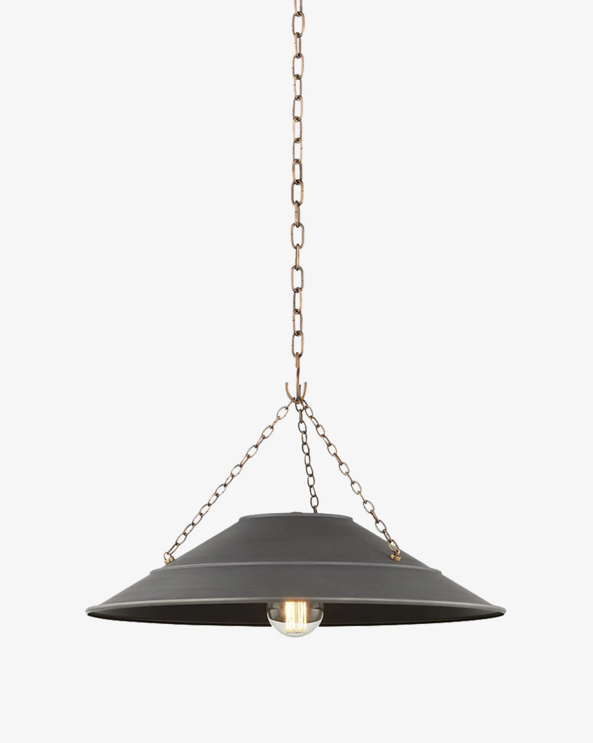 The Arcane Pendant strikes a balance between its simple structure and its stunning tapered shade. In an aged brass finish, the pendant makes a unique statement in lighting designs from the kitchen to the living room.