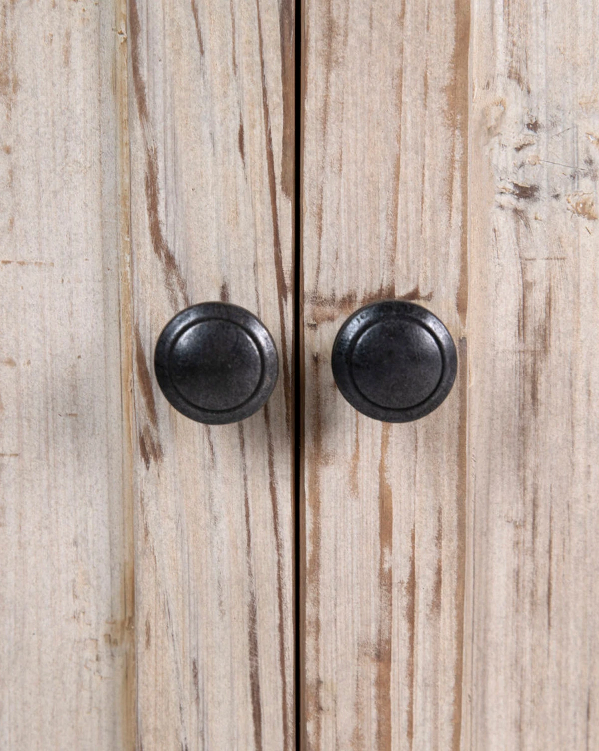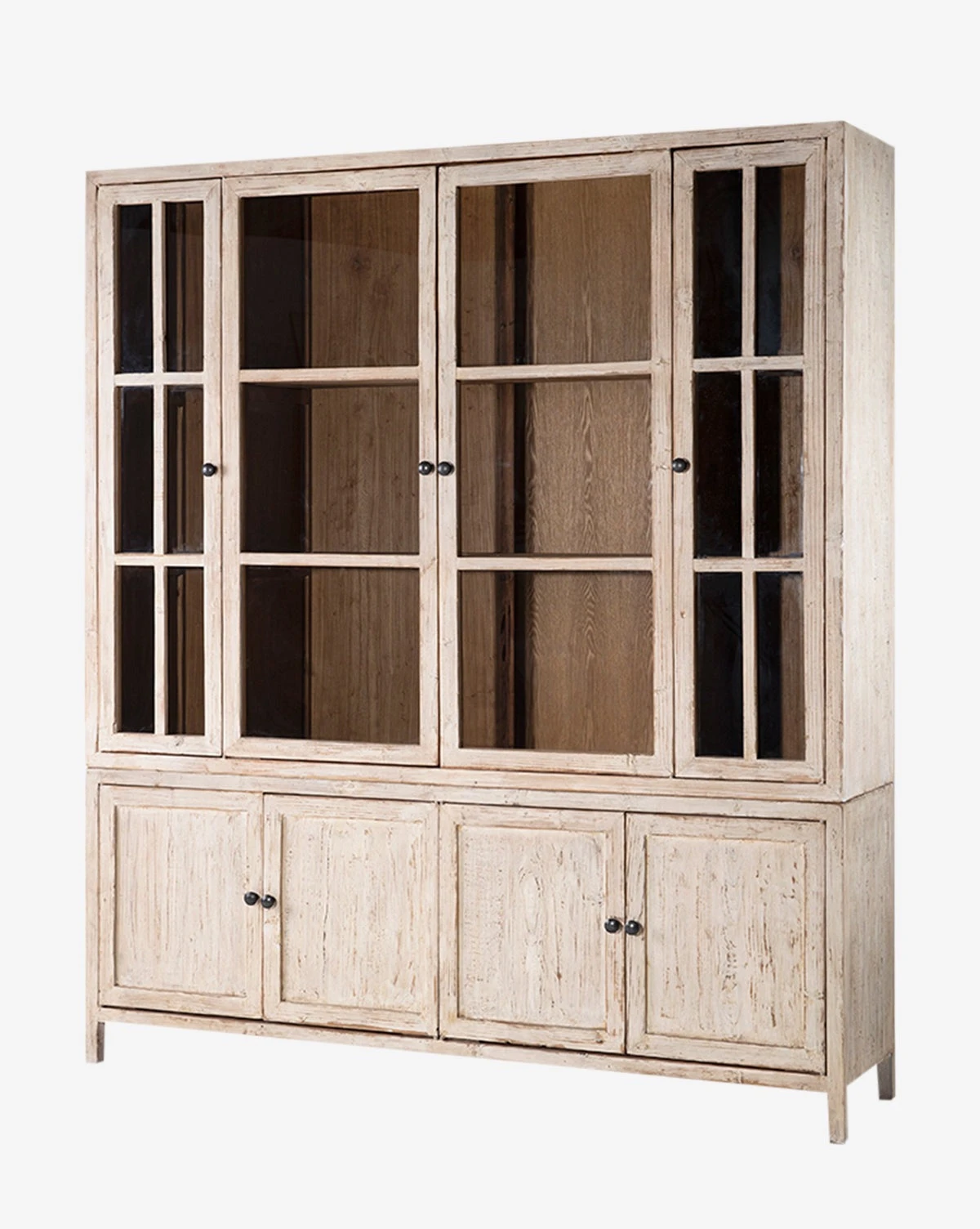 Traditional in form, the Arendell Cabinet brings a natural quality to your home with its organic details and materials. Made from reclaimed pine in a light wash, this cabinet has plenty of room for displaying beautiful dishes and closed door storage for functionality. Antique iron hardware complements the light tone of the cabinet and adds a classic detail to your space.