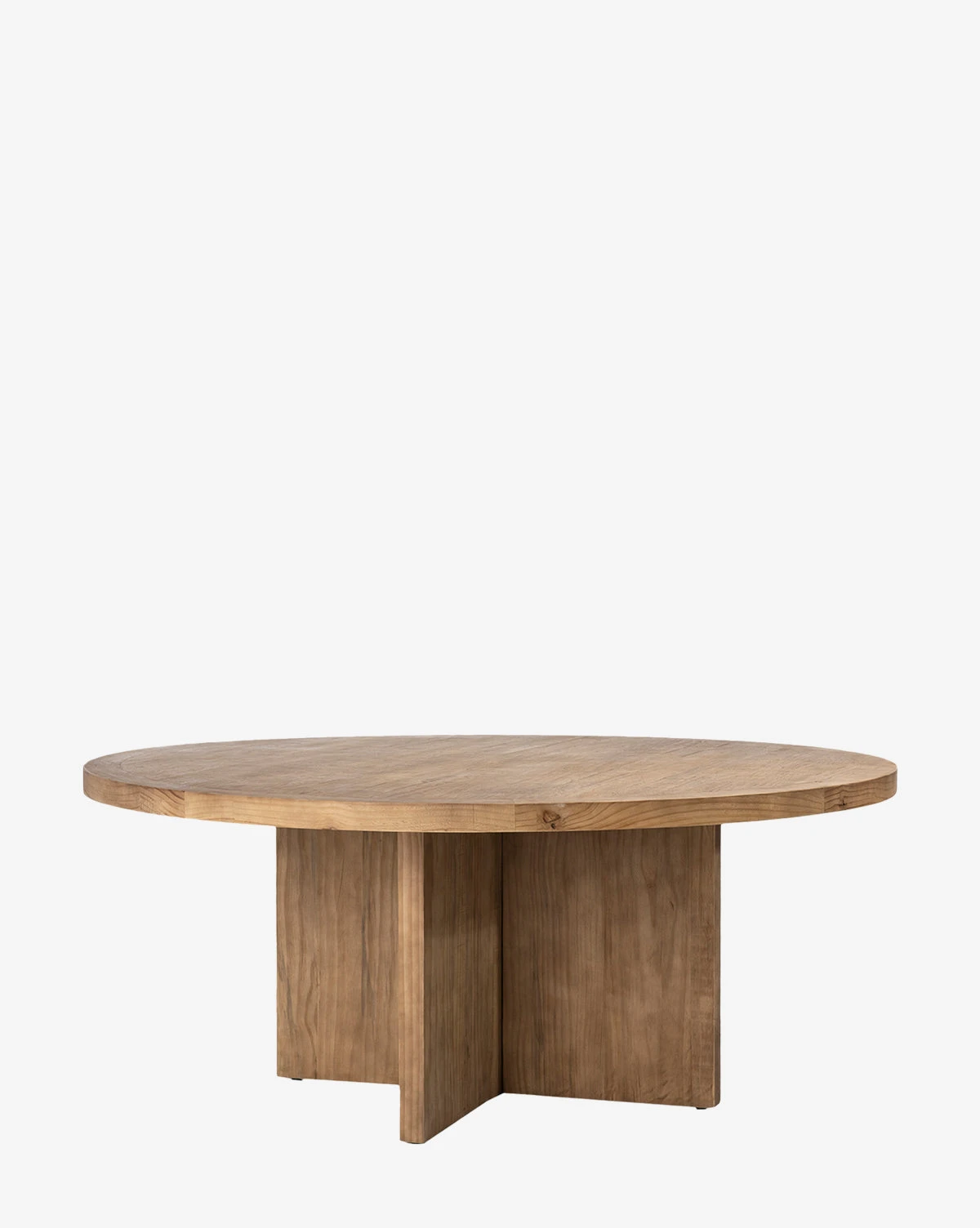 Crafted from reclaimed pine, the Arley Dining Table features natural detail from the woodgrain and a cross-style base that brings a modern look to this rounded tabletop. With a natural finish, the dining table has a refined yet organic feel, elevating your dining spaces.