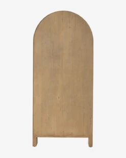 Crafted from solid mindi wood, the Badgley Cabinet is burnished to create a smooth, shiny finish. Glass-front cabinetry showcases the woven, natural cane backing inside, and fixed shelves allow for thoughtful, intentional styling. Designed in a beautiful arch shape extending all the way to the floor, its architectural shape is a distinctive addition to dining rooms and living spaces.