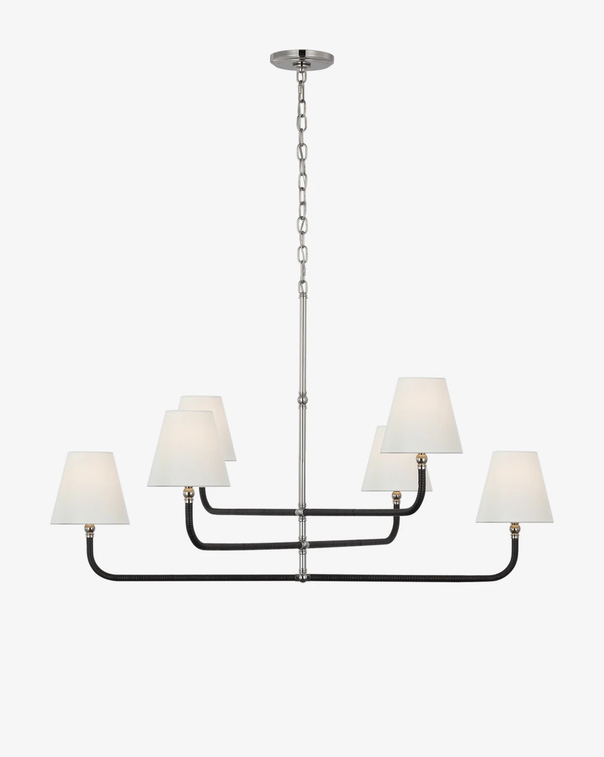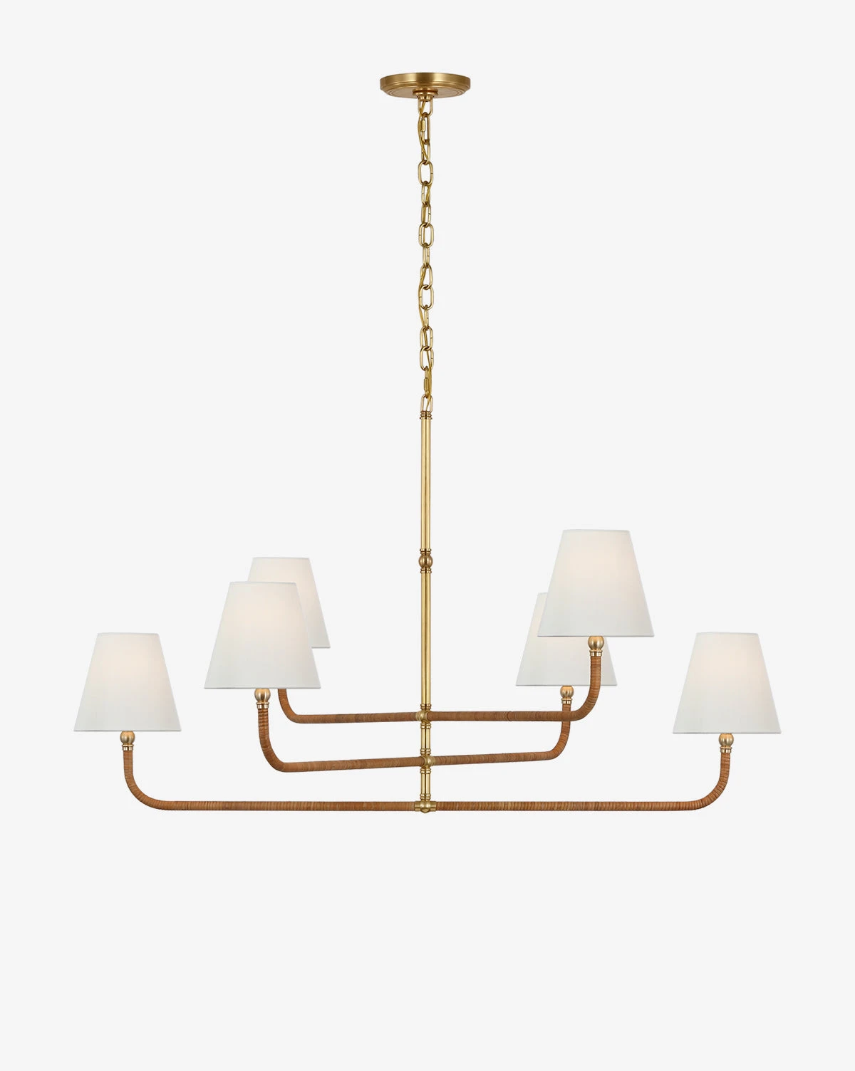 With tapered white linen shades to complement the shapely arms of its structure, the Basden Three Tier Chandelier brings modern refinement to your decor. Rattan wraps around the arms of the chandelier as an organic element to lend texture and approachability.