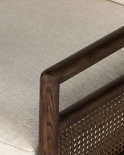 Comfortable and timeless, the Bellen Chair is crafted from solid ash, featuring woven cane panels. Its simple geometric frame holds plush feather-blend cushions covered in a neutral linen fabric. Styled in your living room or in a reading nook, this chair lends a sophisticated feel wherever it is placed.