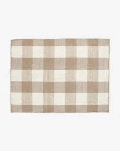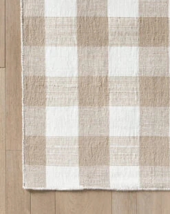 On a background of neutral cream, thin detailed lines of warm tan come together to create a banded design on our Belleville Handwoven Indoor/Outdoor Rug. Crafted on a loom with recycled polyester, this gorgeous, simple rug is soft to the touch and has no pile, making it easy to clean and perfect for high-traffic indoor or outdoor areas.Â