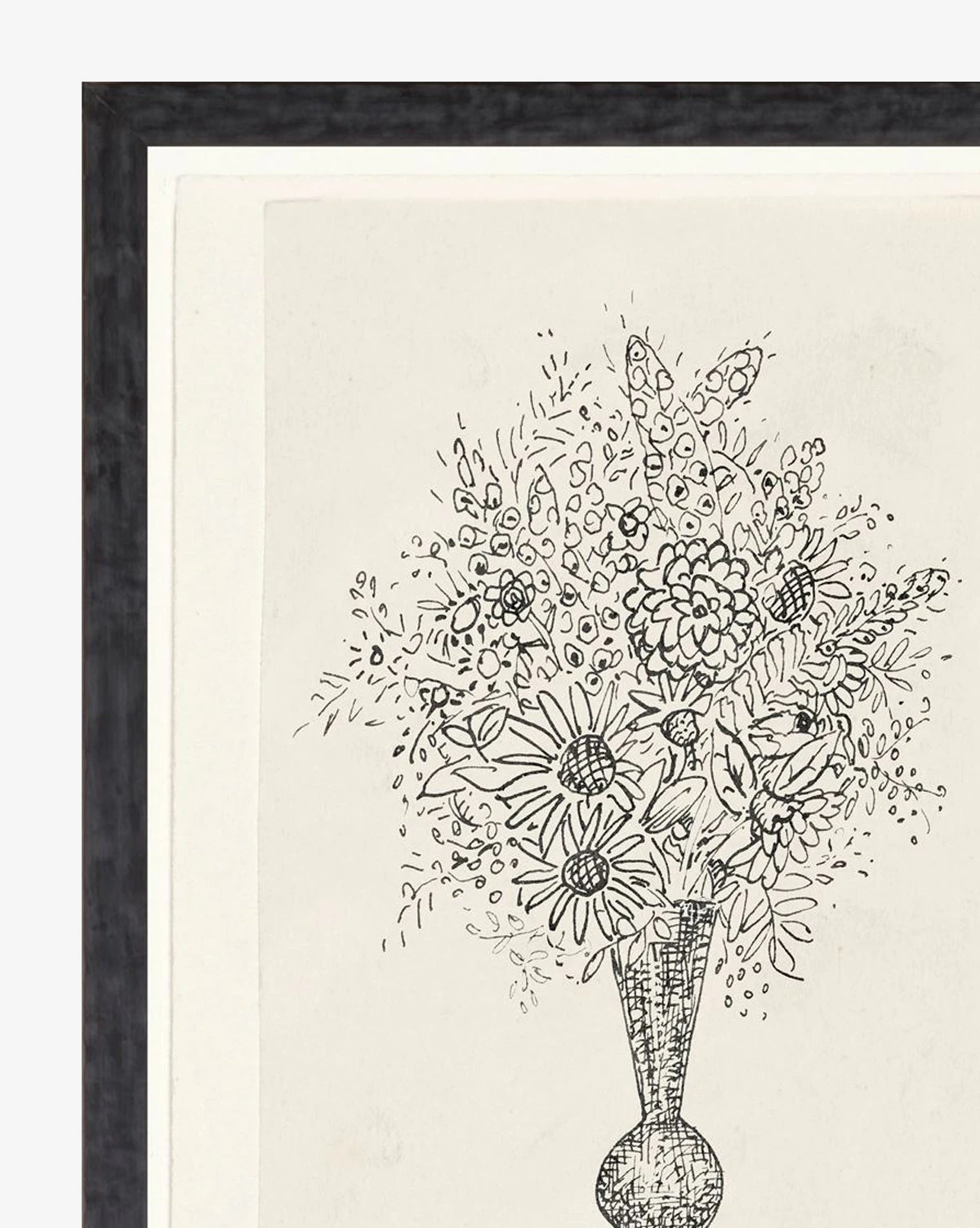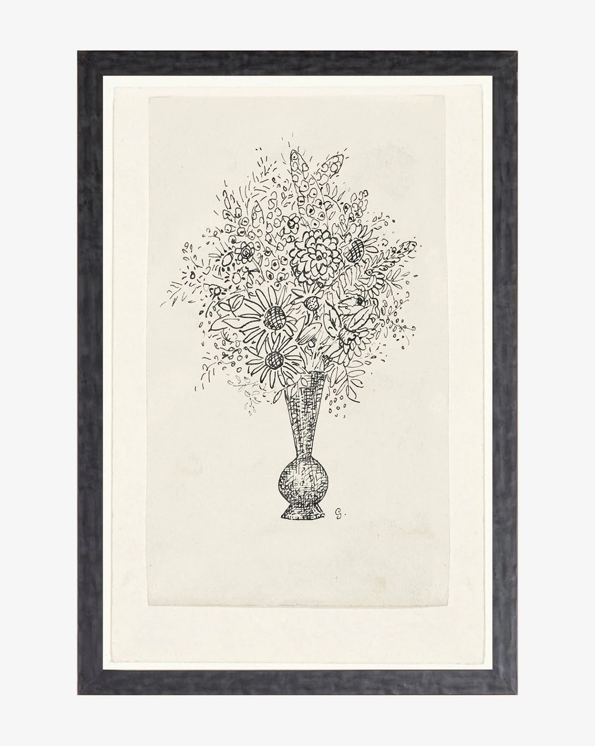 A historically inspired sketch and frame, the Black & White Bouquet adds character to your rooms. Fine line details and an imaginative collection of flowers bring to life a whimsical garden through this still-life drawing.ย