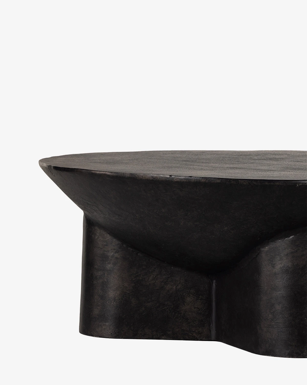 Made from cast aluminum, the Blackburn Coffee Table brings a sleek and contemporary feel to your space. Its raw black finish and shapely Y base bring dimension and texture to your space, adding geometric intrigue to your styling.