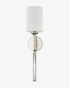With a white linen shade to complement the elongated form, the Brewster Sconce brings modern refinement to your decor. A steel structure in your choice of finish lends a sophisticated feel to your styling in any room.