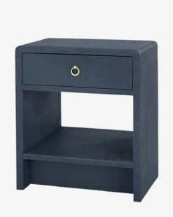 The Briar Nightstand is a late mid-century take on classic modernism. Â Each of its gray, navy, and white color options displays the same unique texture of its linen finish. Designed with waterfall corners, fitted drawers, and mix of solid and floating space it adds form and dimension wherever its placed.
