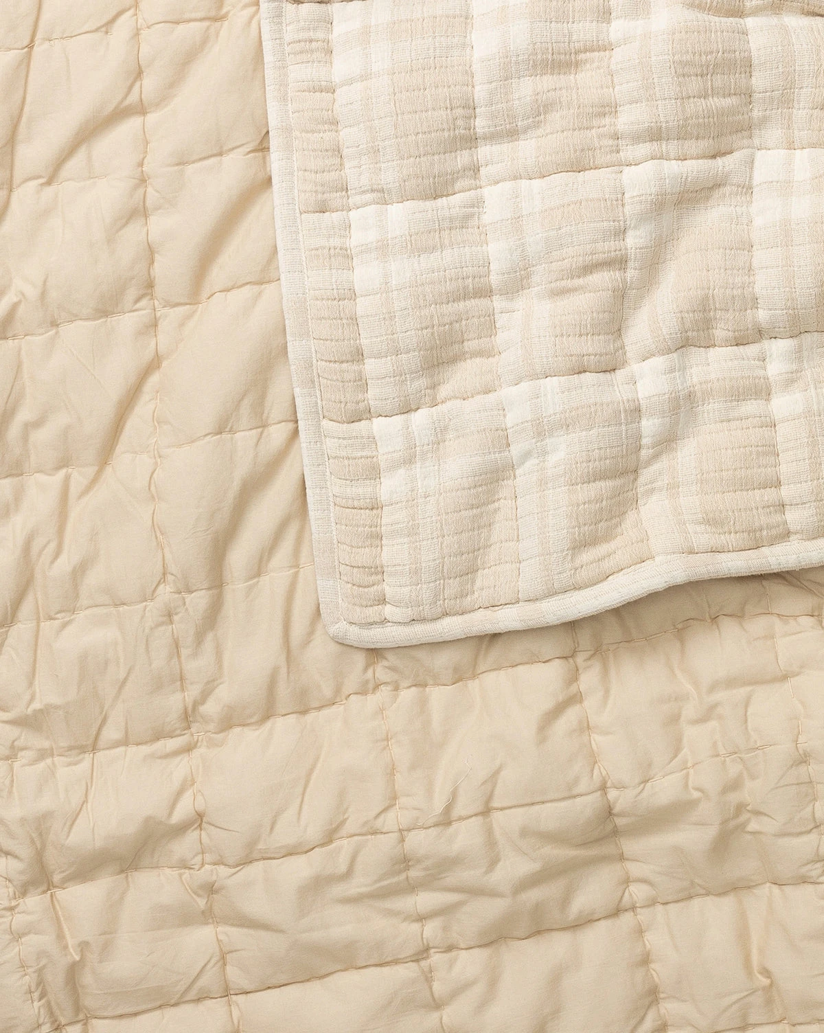 In a classic design, our Briony Gauze Quilt is hand-quilted from cotton. The timeless feel and neutral palette of the gauze quilt make it a staple among your bedroom decor. This textile is soothing in aesthetic with traditional stitching to make the gauze quilt a welcome detail in your space.
