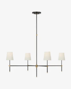 Simple and streamlined in design, the Bryant Chandelier is a classic addition to any space. The elegant structure and tapered linen shades of this fixture blend seamlessly with any existing decor wherever it is styled.