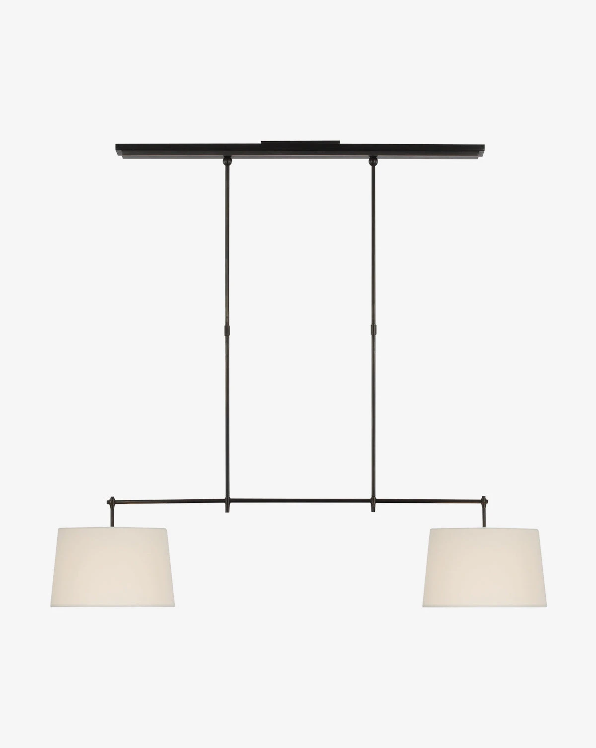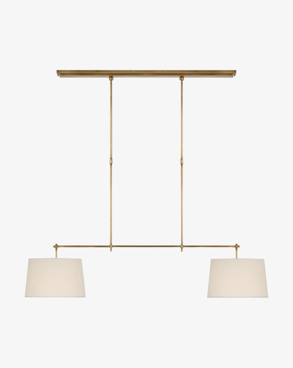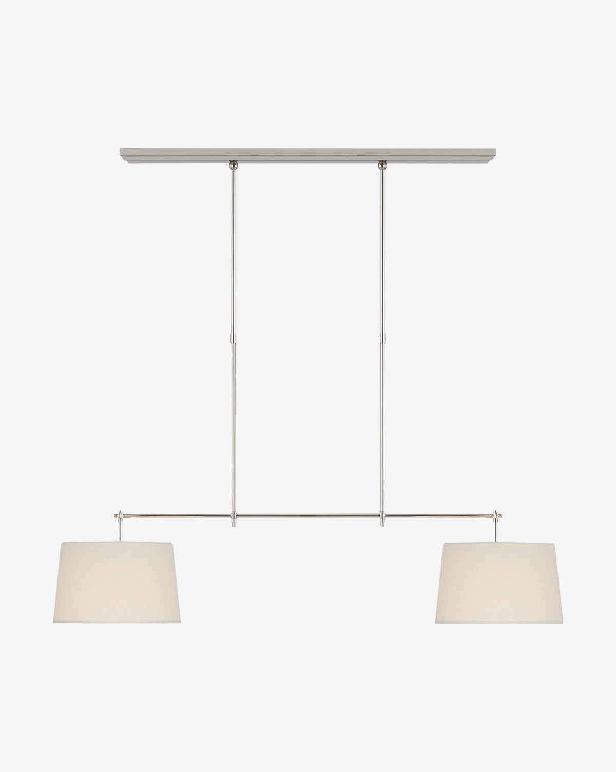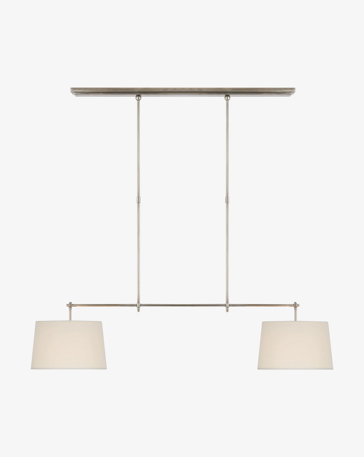Simple and streamlined in design, the Bryant Medium Billiard is a classic addition to any space. The elegant structure and wide linen shades of this fixture blend seamlessly with existing decor wherever it is styled.