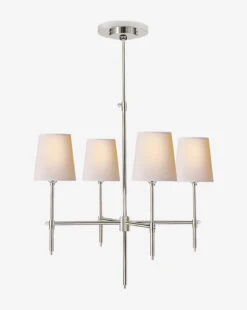 Simple and streamlined in design, the Byrant Small Chandelier is a classic addition to any space. The elegant structure and tapered linen shades of this fixture blend seamlessly with any existing decor wherever it is styled.
