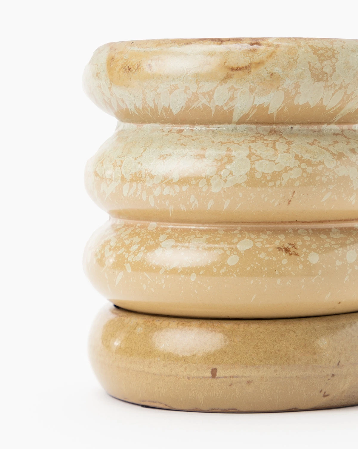 With a glaze that resembles a scene from a nature painting, the Butterscotch Stoneware Planter naturally brings beauty into your home. The cylindrical shape and its four rings seamlessly integrate the saucer and add dimension to this unique planter.