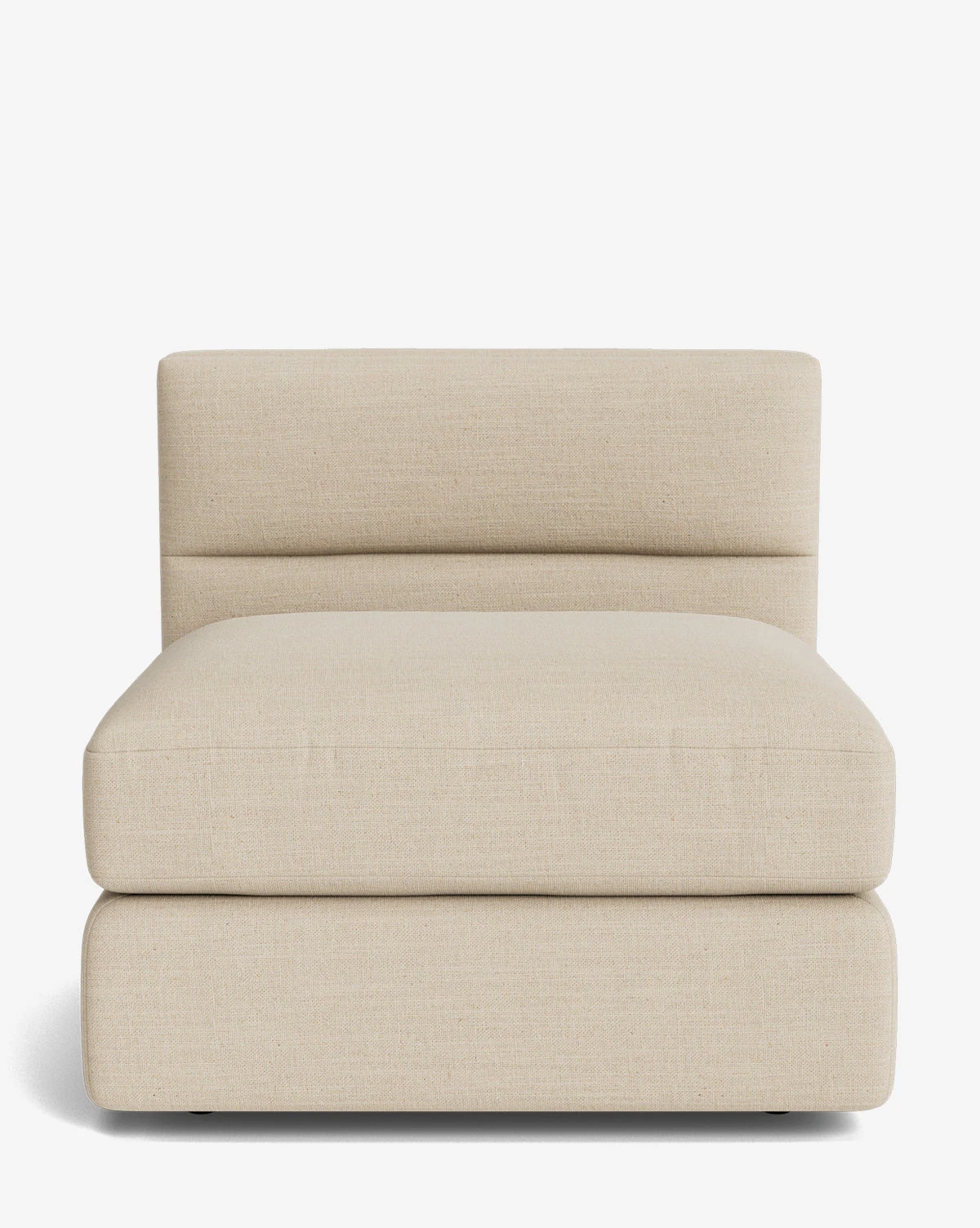 Our Claremont Modular Armless Chair takes a bold and vintage-inspired approach to luxurious comfort. A functional accent to your living space, the wide seat cushion is complemented by a channeled back. Make this piece completely your own by choosing from our favorite high-quality fabric choices that suit your space and lifestyle. Style the modular armless chair on its own or within a set from our Claremont modular collection.
