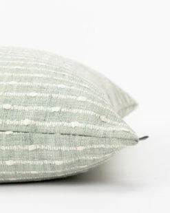 Detailed thread work gives the Claudette Green Pillow Cover its unique character. Available in a beautiful colorway, this textile has a pattern of soft stripes punctuated with dots of heavy thread work that make a simple statement, lending versatility to changing styles in children’s bedrooms.