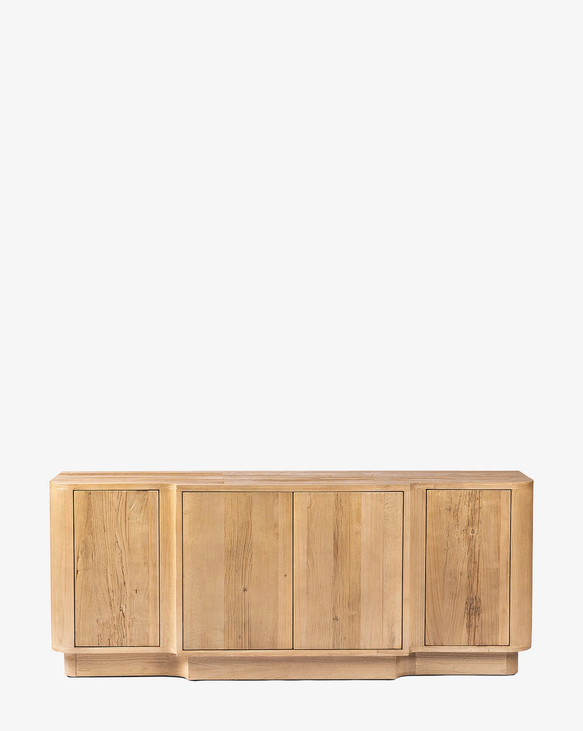 Crafted from reclaimed elm wood, the Claxton Sideboard is a modern sideboard that makes a subtle statement with its shapely design. With four doors and a wide top surface that reveal the natural wood grain, the intentional details of this sideboard bring sophistication to your space.