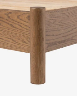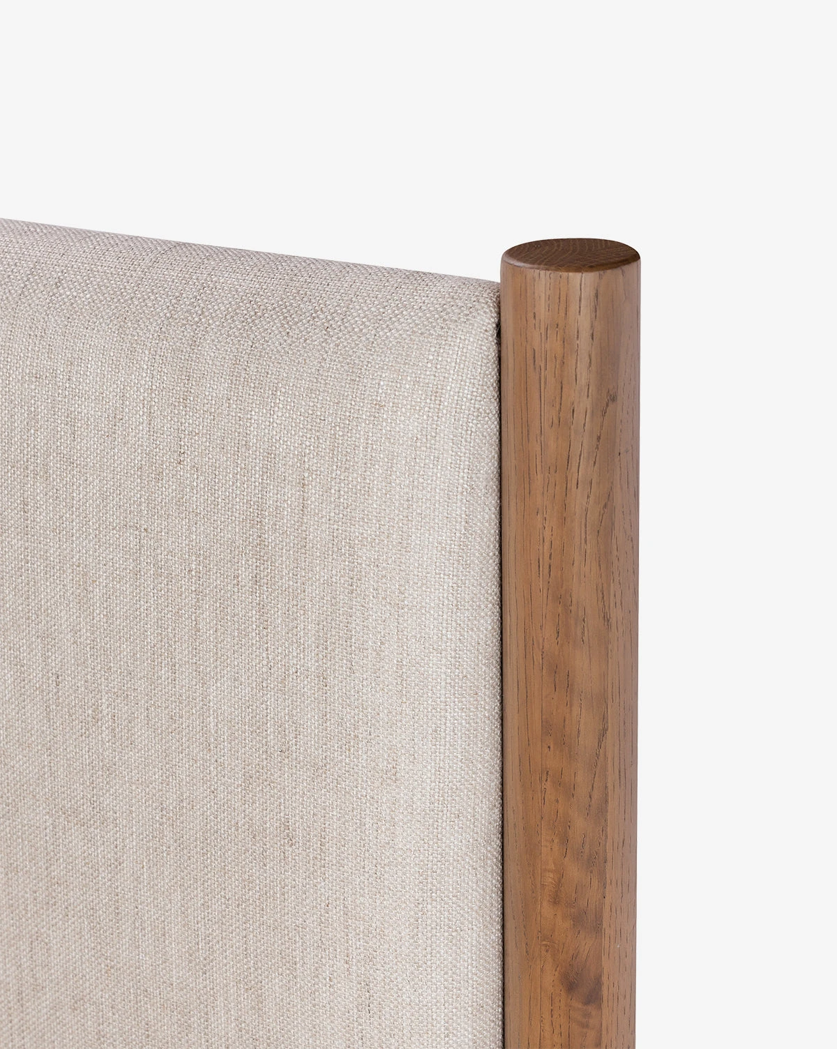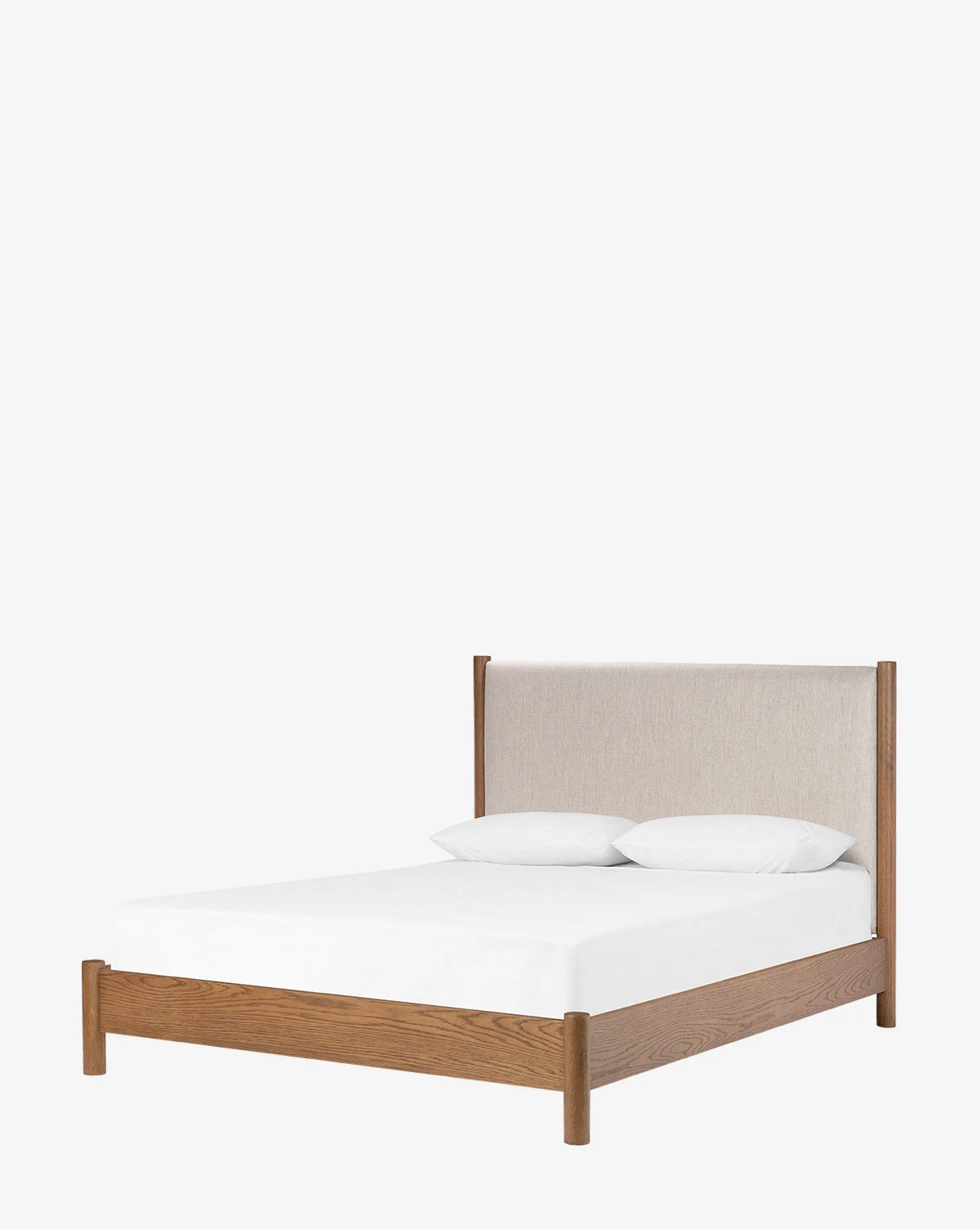 Crafted from a stunning mix of materials, the Crue Bed brings modern design to the forefront of your bedroom. Its oak frame features an amber finish that brings a complementary feel to the natural upholstered headboard.
