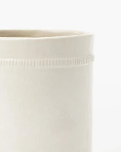 Casual but elegant, the Dashed Ceramic Vase is subtly detailed and gives an airy feel to kitchen countertops. Crafted from ceramic, its clean white finish is adorned with small dashes in a stripe around its perimeter.