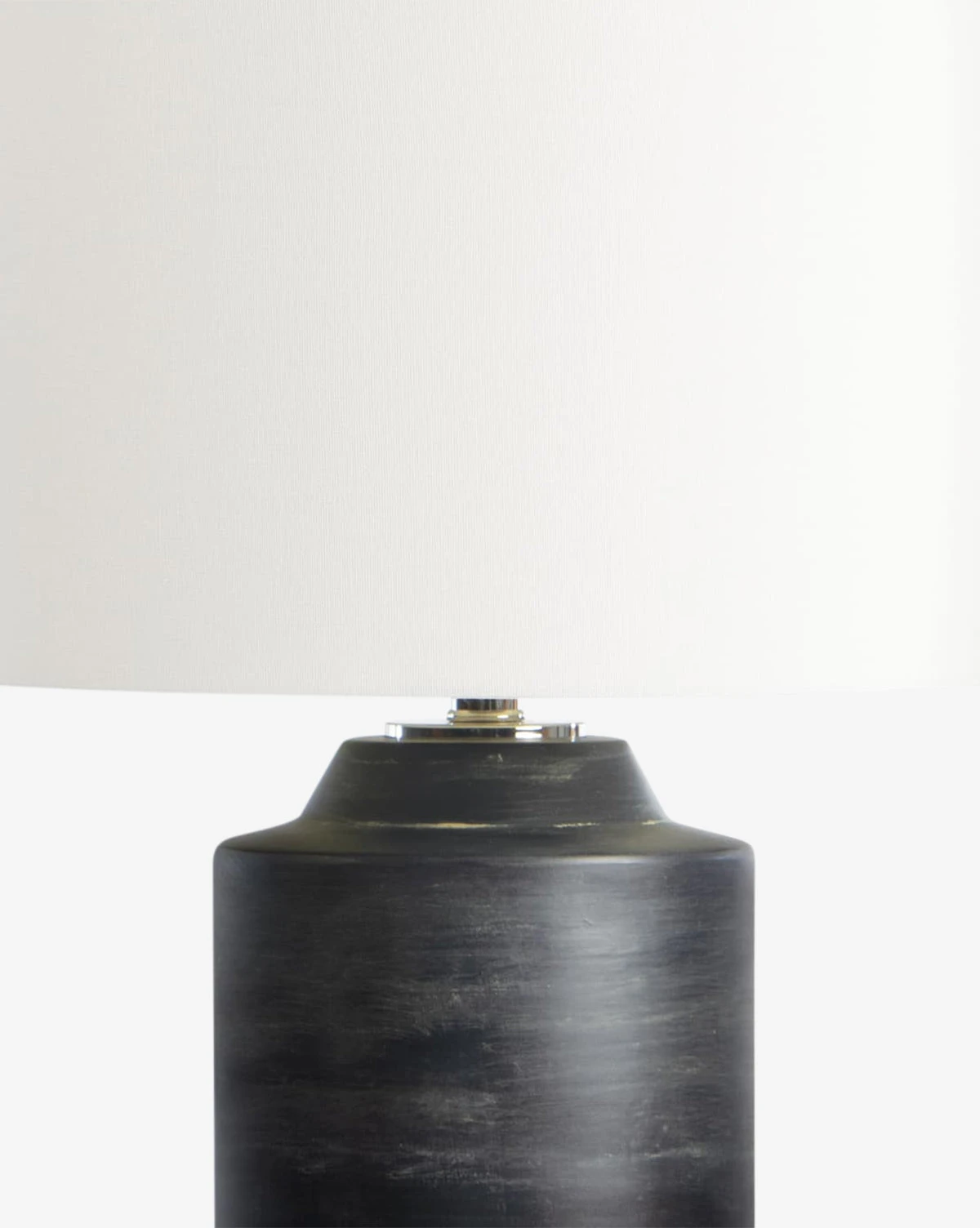 The Dayton Ceramic Table Lamp, in an ebony finish, is carefully detailed for a glimpse at its ceramic make. It feels both modern and natural, paired with a subtle, yet contemporary shape.
