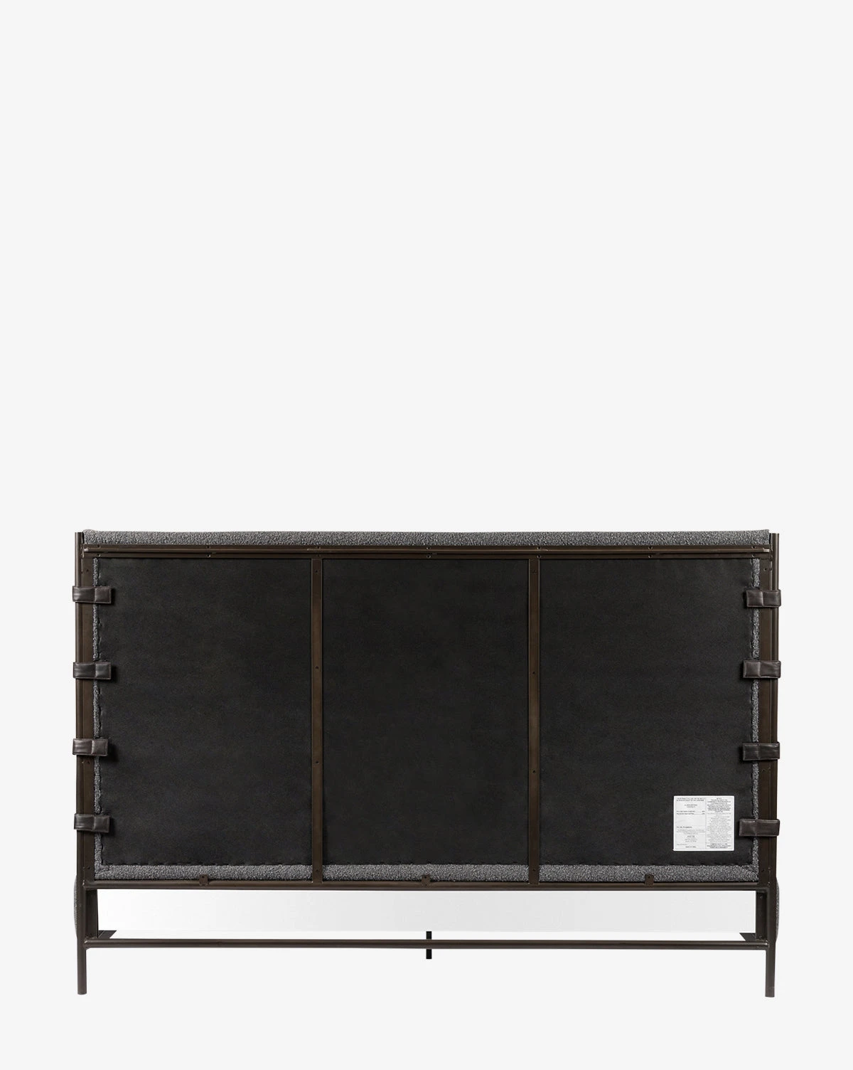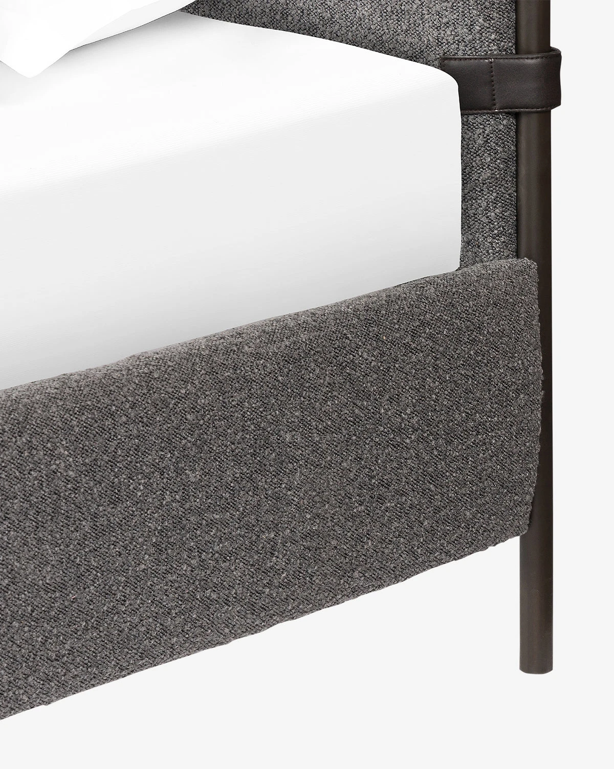 Engaging the senses with a material-rich design, the Depolo Bed blends a cream boucle with rich brown leather straps and strong metal rods. Its high-end craftsmanship gives your bedroom a comfortable feel, adding a bold and intentional quality to the space.
