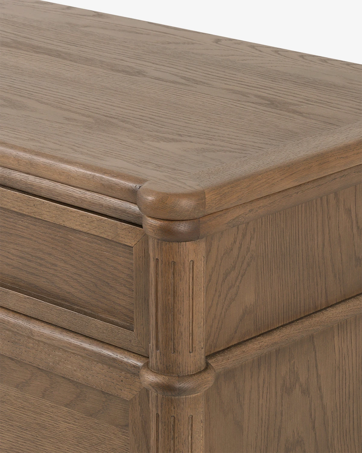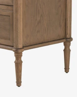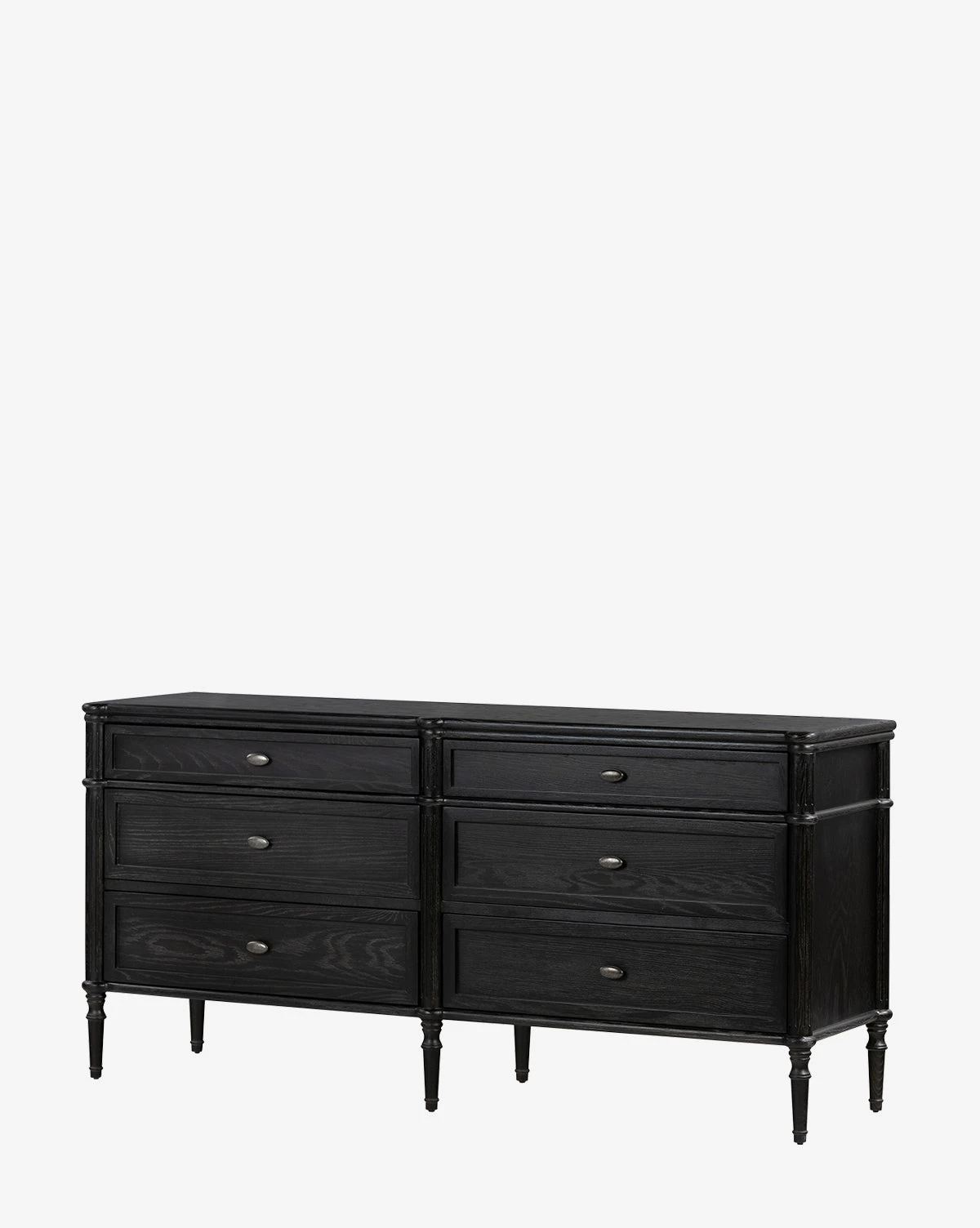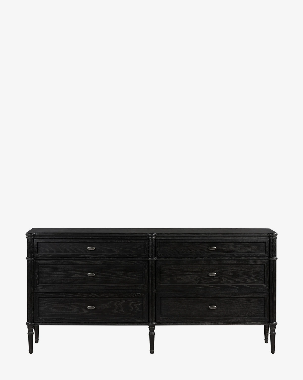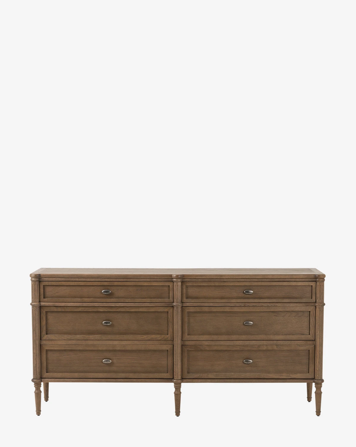 In an updated traditional design, the Dixon 6-Drawer Dresser draws the eye with its spindle legs and warm finish. Crafted from oak, this approachable design is finished with oval aged brass pulls, lending an elegant detail to your bedroom styling.