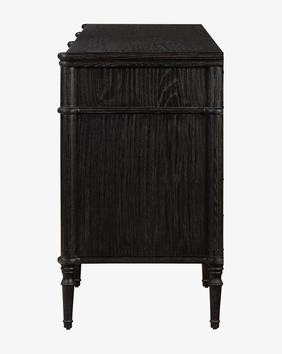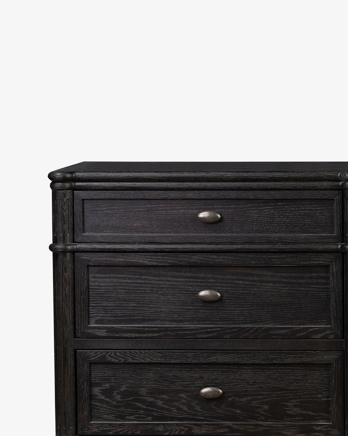 The Dixon 9-Drawer Dresser is crafted with an updated take on traditional design and a keen attention to detail. Made from oak in a distressed black finish, the dresser features aged brass hardware that seamlessly complements the nine drawers of the dresser.