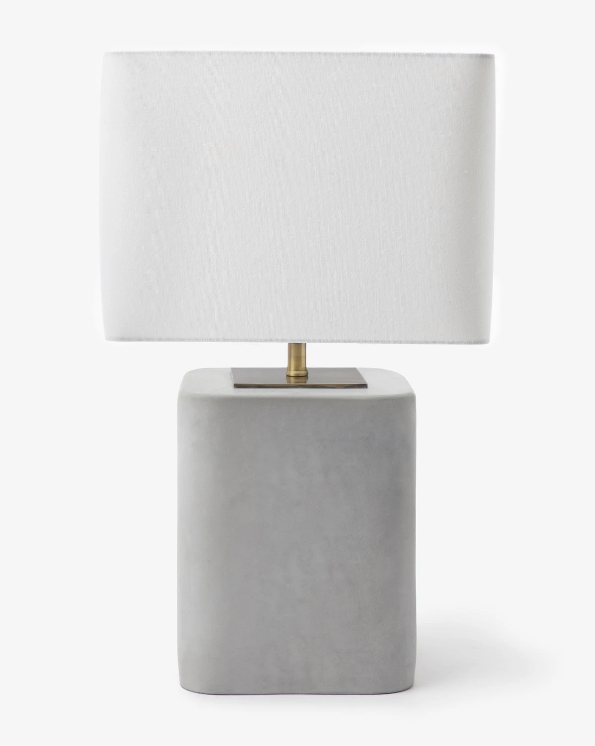 A sleek geometric base brings shape and a sculptural element to your space with our Dora Table Lamp. Crafted from cement with a calming neutral tone and complete with a white cube-like linen shade, this table lamp has a sleek, modern feel that elevates your consoles or side tables.