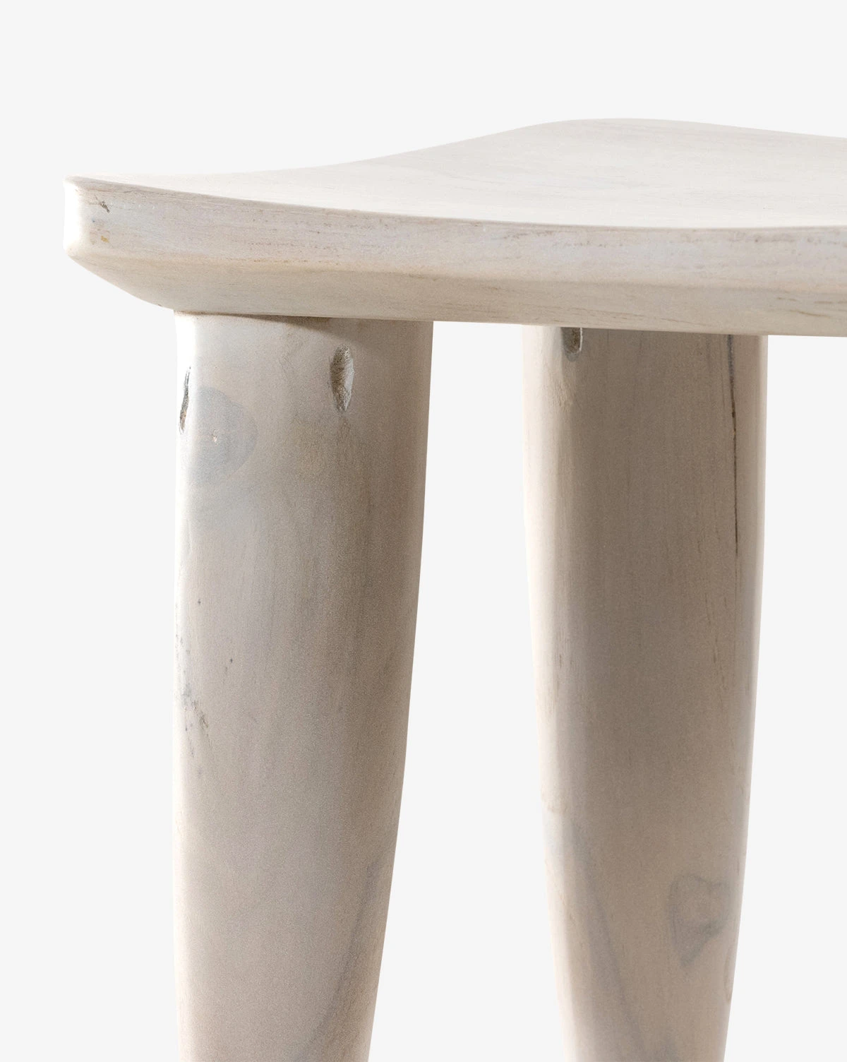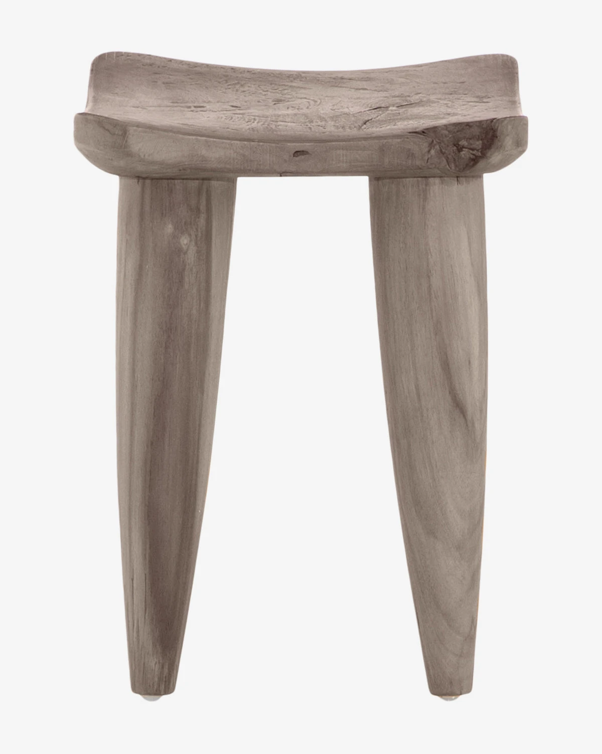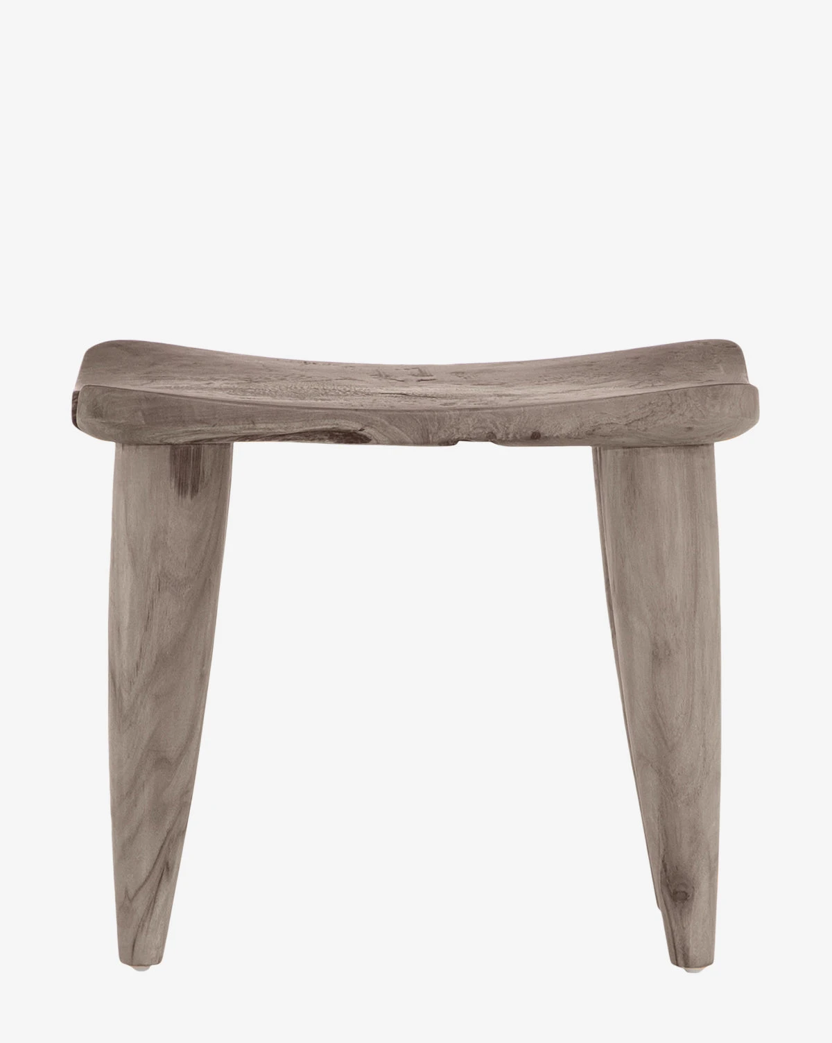 Smoothed edges and a simple style accentuate the natural material of the Dowdey Outdoor Stool. Inspired by West African design and crafted from teak, every piece showcases wood texture and graining that varies across every piece. Its organic design is given a weathered, gray-finished that celebrates the knots and holes of the natural teak wood.
