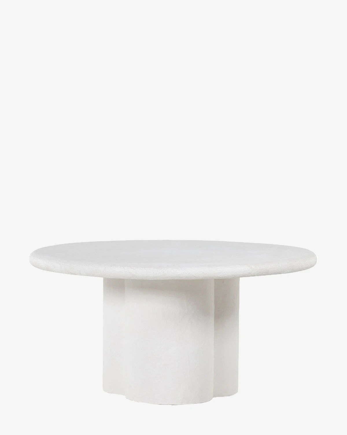 Strong and firm, the Eamon Dining Table uses white concrete to add a clean, nuanced statement to the dining room. Its clover base carries visual weight and balances the exceptional round tabletop, creating a versatile space for everyday tablescapes.