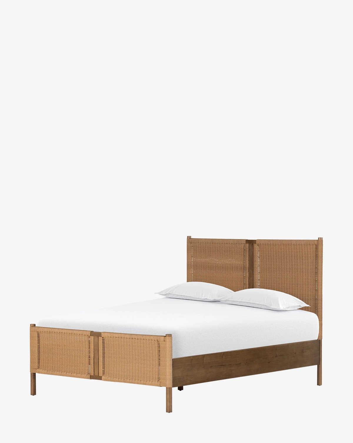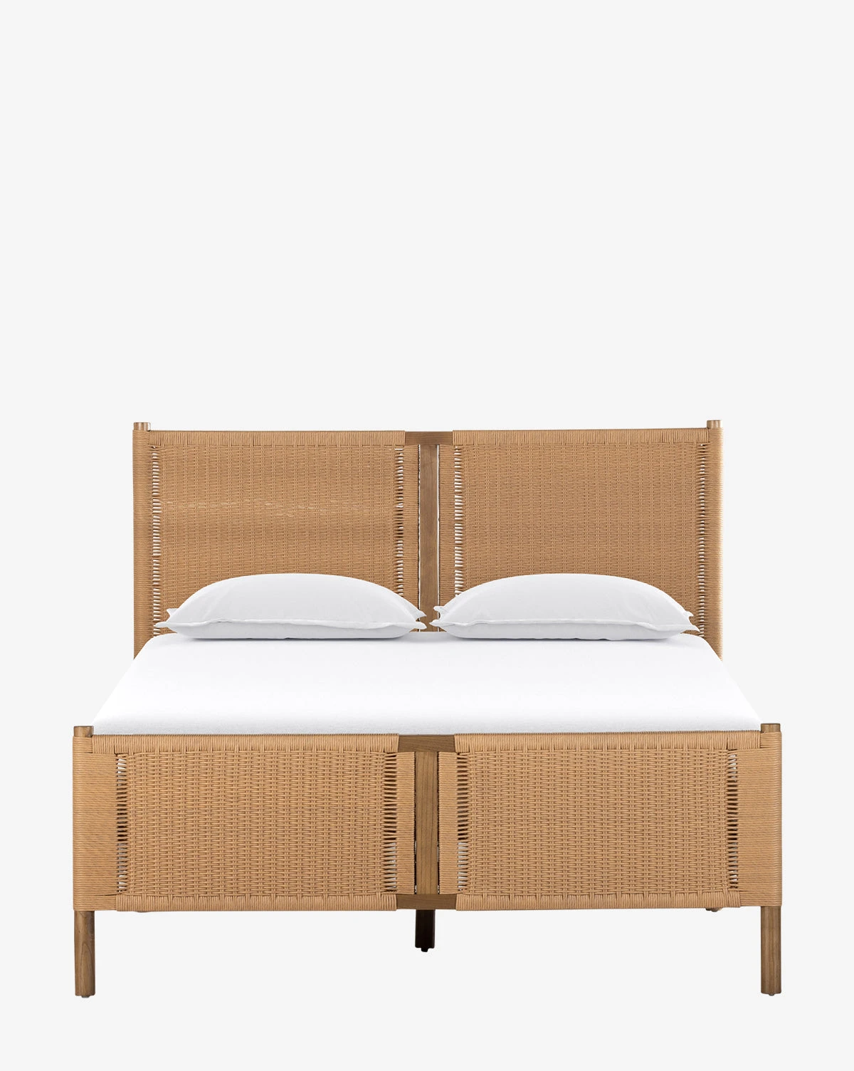 Woven texture creates an organic feel throughout the Edel Bed. With a structure made from solid sungkai wood, the rich color of the frame and its woven details bring a warm and inviting presence to your bedroom decor.