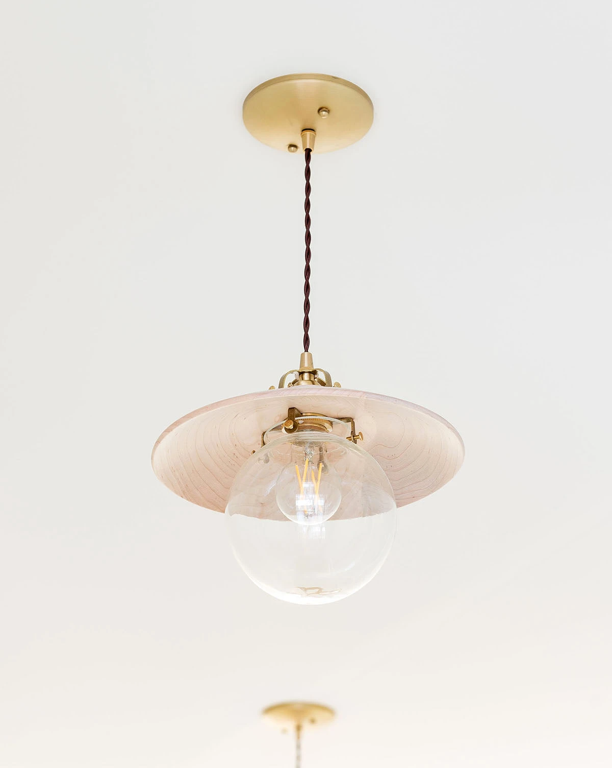 The Edmund Pendant is an unexpected twist on the ordinary with handcrafted quality. Its handmade wooden shade frames a slightly oversized bulb for a play on scale and an eclectic mix of style.