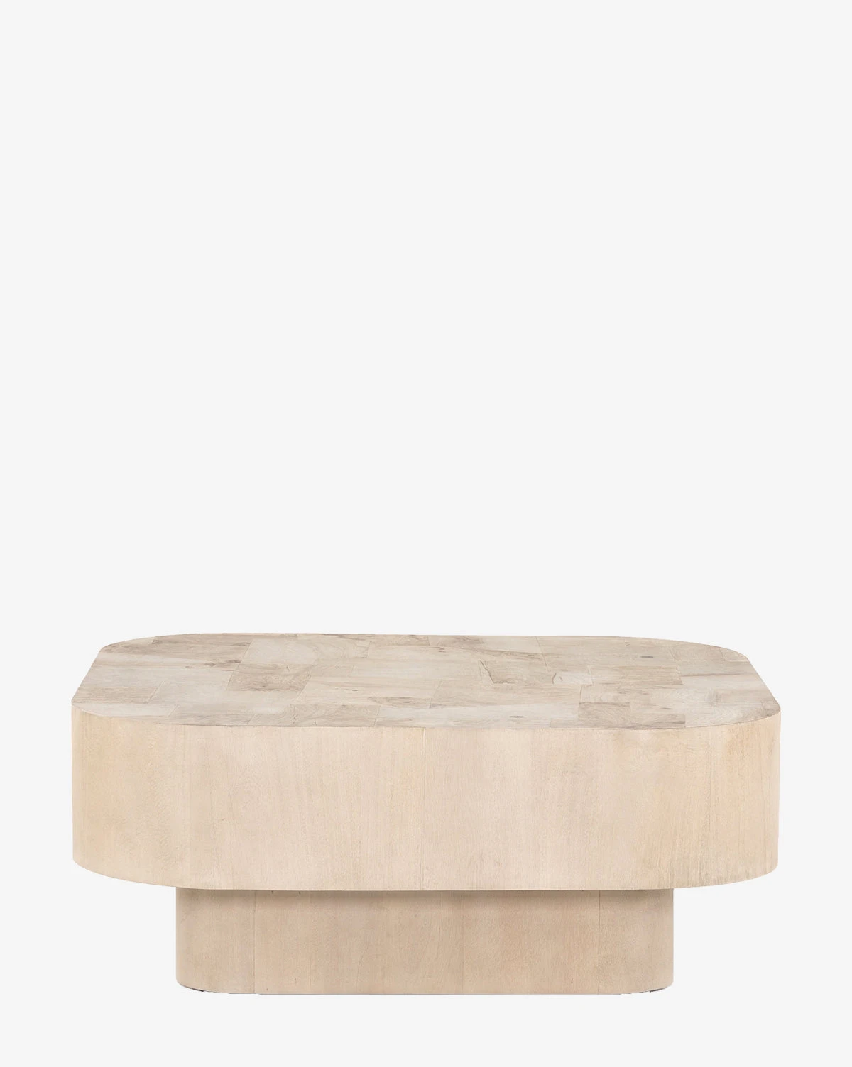 Lending visual density to your space, the Eleora Coffee Table makes the most of its modern form with a soft-squared tabletop and patchwork pattern. Crafted from bleached ash burl and finished in an ashen walnut hue, its light coloring balances out its weighty presence, for a light and airy look.