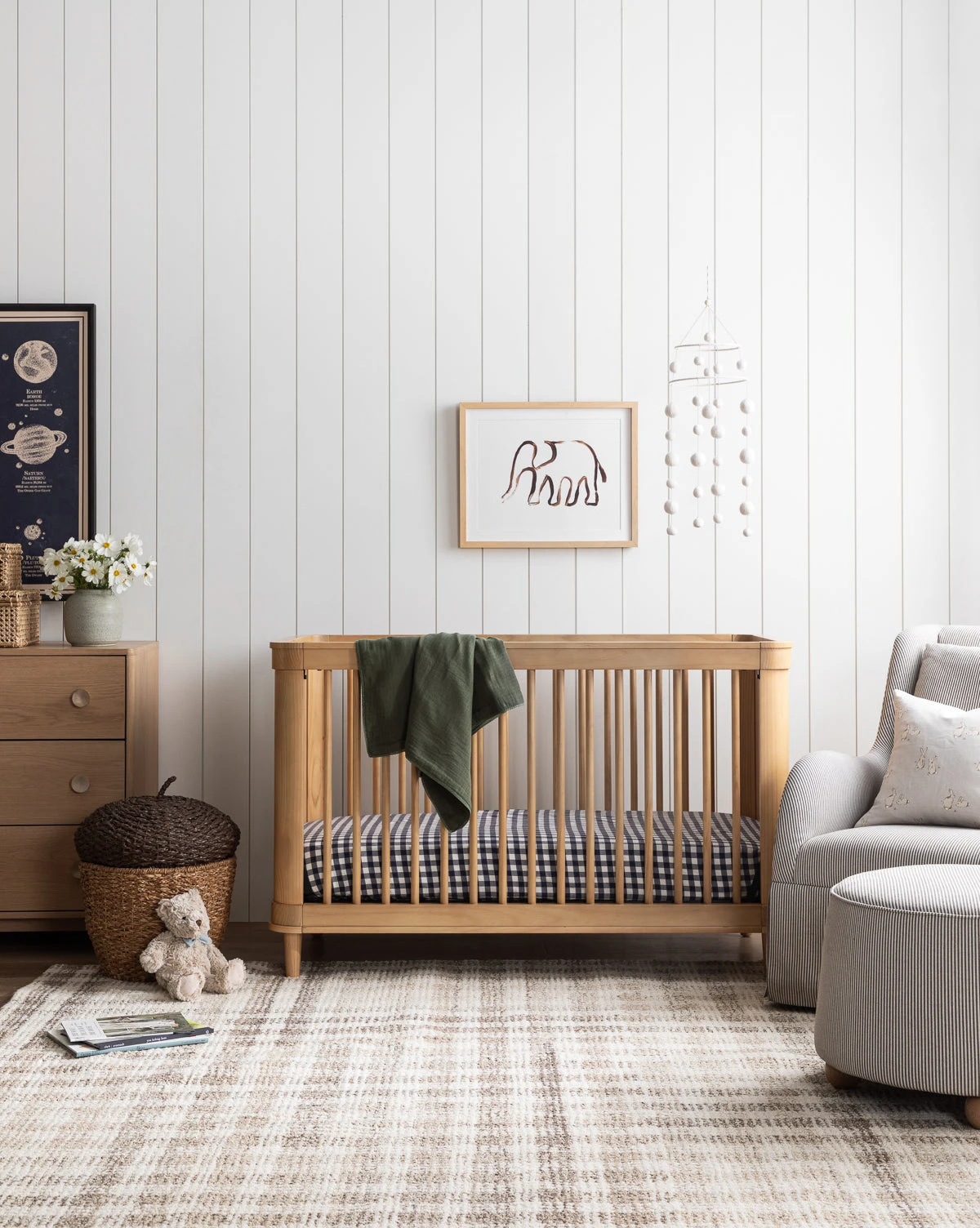 With simple brushwork and a warm, earthy tone, Elephant Gesture creates a distinct yet simple profile of an elephant. A giclee print on paper within a natural woodgrain frame, this piece brings gallery-quality materials and a warm and inviting presence to kids’ rooms or nurseries.