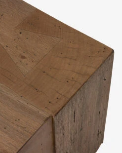 In a rustic wormwood finish, the Elias Rectangular Coffee Table boasts a creative, contemporary design. Its thick-cut oak veneer structure makes a sculptural piece that features sophisticated dovetail joinery, seamlessly elevating your living space.