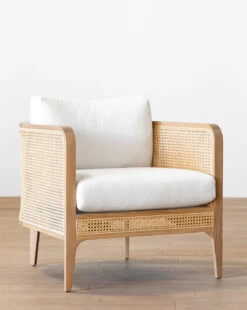 Expanded from our best-selling outdoor chair, the Elowyn Indoor Chair is crafted from a continuously curved frame of solid oak. Detailed with natural caning and complete with comfortable cushions in a soft linen and cotton blend, this piece brings an organic, casual tone to your living spaces.