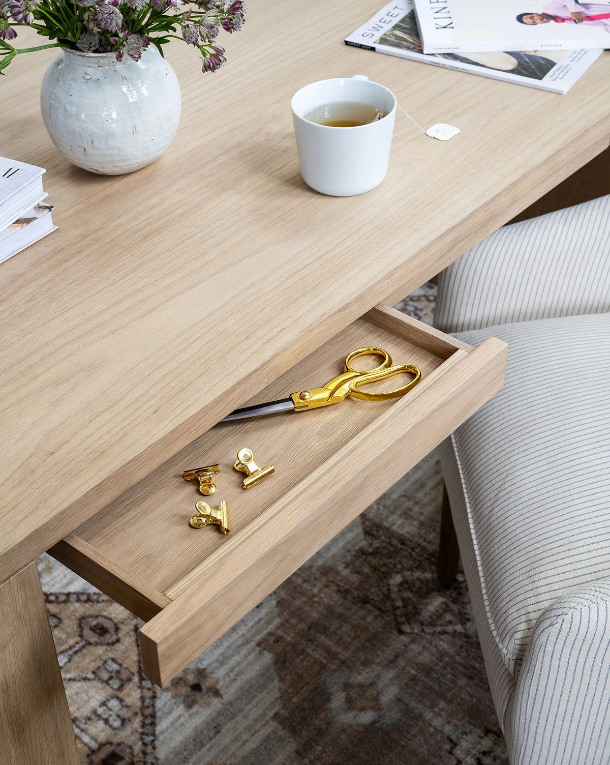 Bold yet understated, the Elson Desk makes the most of a simple waterfall frame in its Scandinavian-inspired design. With a subtle drawer tucked beneath its tabletop and an all-over finish, this piece can float in any office and lends a refined, elegant feel.