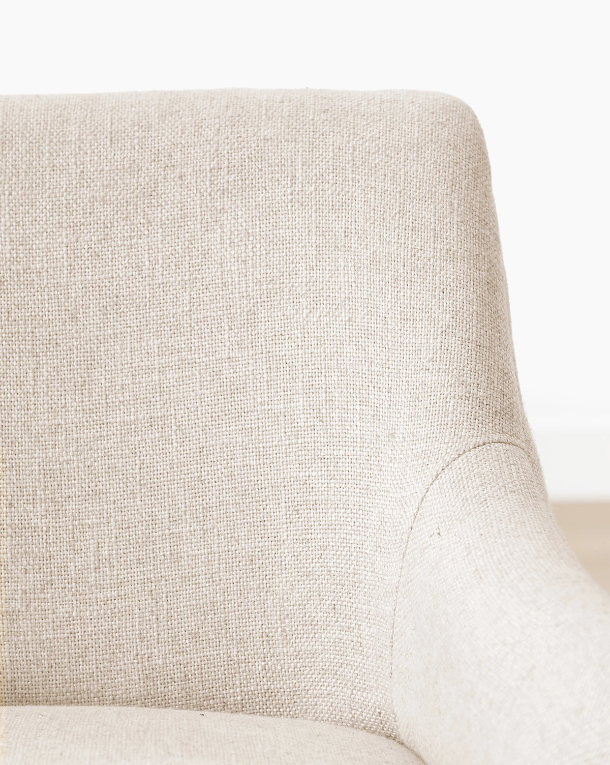 Dramatic and poised, the rolling Elton Office Chair brings elegance to the office. With a linen blend upholstery in an off-white or ink colorway, its back fluidly extends into its armrests using sophisticated lines, creating an elongated look and elegant feel.