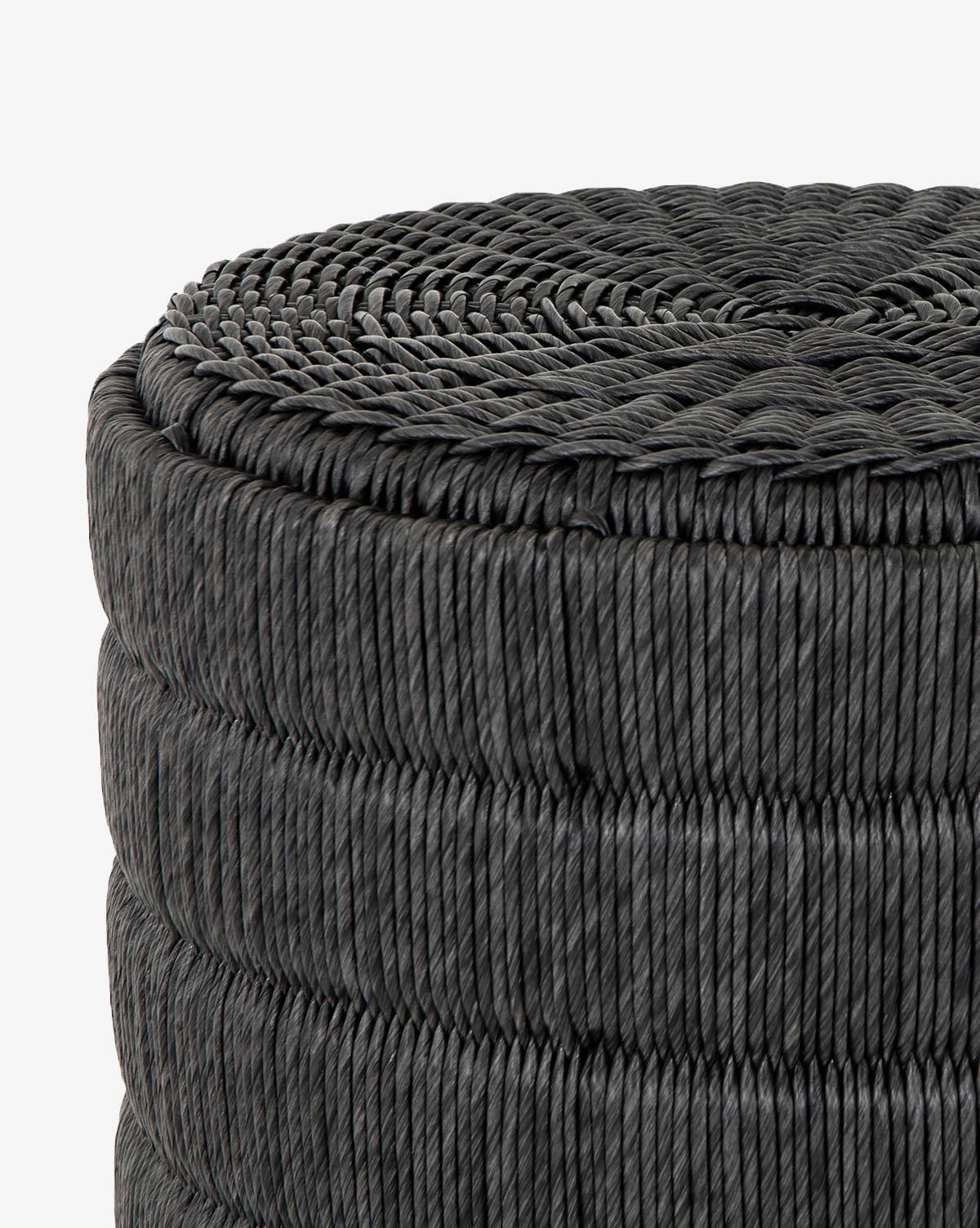 With a deep hue and all-weather wicker construction, the Emiliano Side Table adds depth to your space, whether indoors or out. Texture driven with a tiered design, this side table lends effortless style layered in your living room or beside your favorite outdoor sofa.