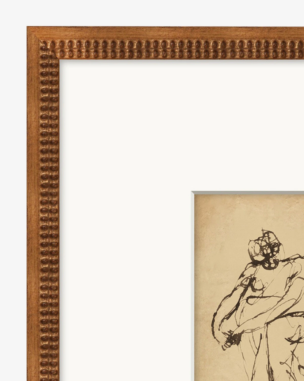 Displaying art in progress, Entwined evokes emotion through its clever use of negative space. Fitted with a single mat, and warm toned wood frame, this piece blends seamlessly with your existing decor, whether it’s styled as part of a gallery wall, or layered on your mantel.Â