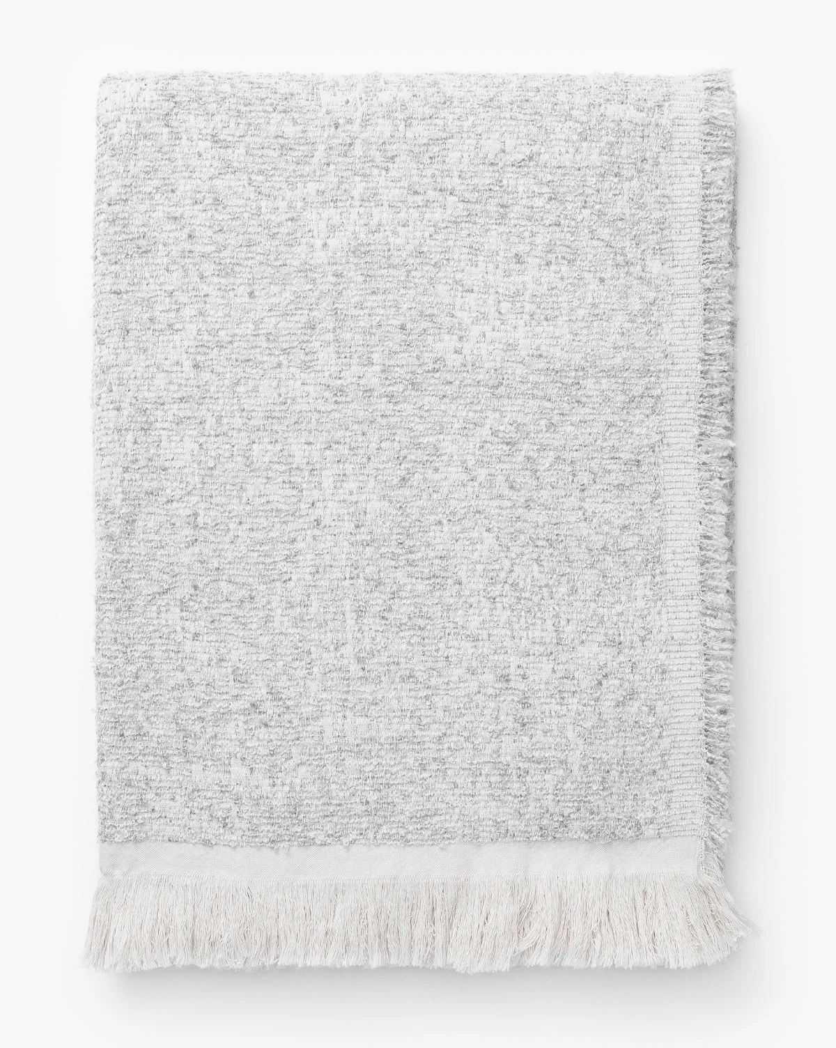 Made from a thoughtful cotton blend, this throw is both beautiful and functional. Its cool palette and textural feel elevate your space when layered with other textiles or draped over a sofa, with delicate fringe for added detail.
