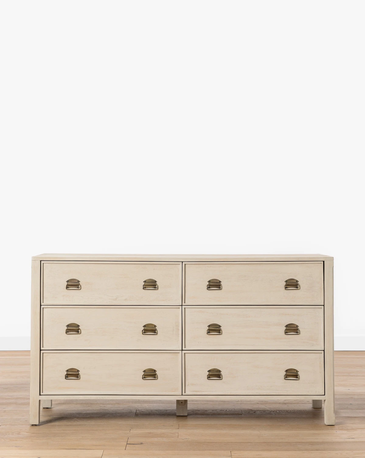 Our Mackenna White Oak Dresser was created with a straightforward design and a keen attention to detail. Crafted from oak wood and finished with brass pulls, this dresser features plenty of storage alongside its slightly curved front and chamfered legs.